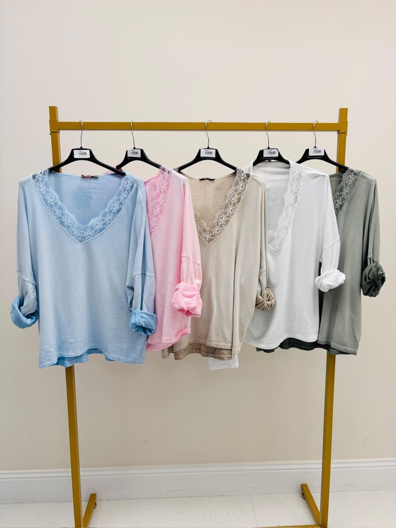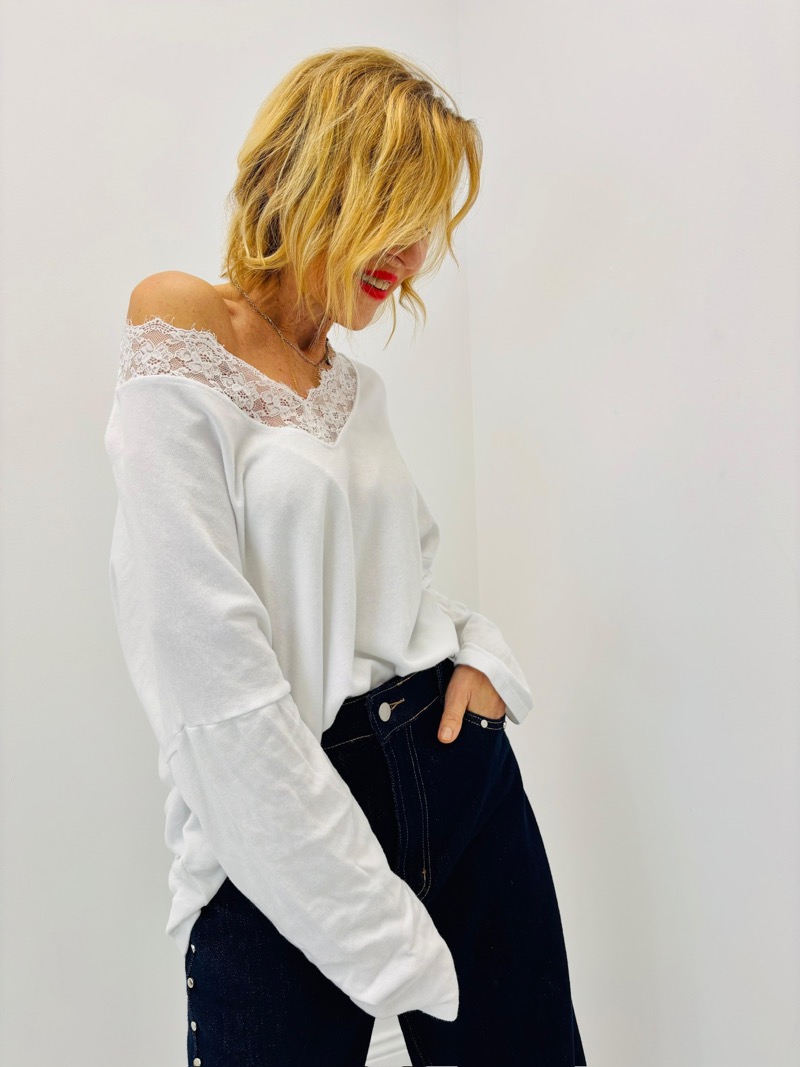 🌸 T-Shirt Oversize à Détails Dentelle en Coton Majoritaire