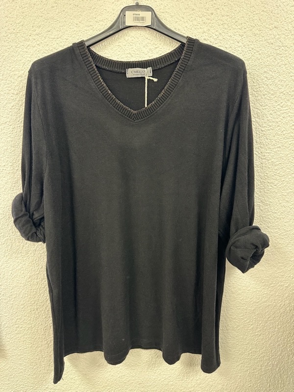 Un basique chic à adopter sans hésiter ! Ce pull à col V séduit par sa maille douce et fluide, sublimée par un discret liseré lurex sur le col pour une touche lumineuse.