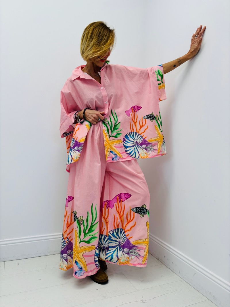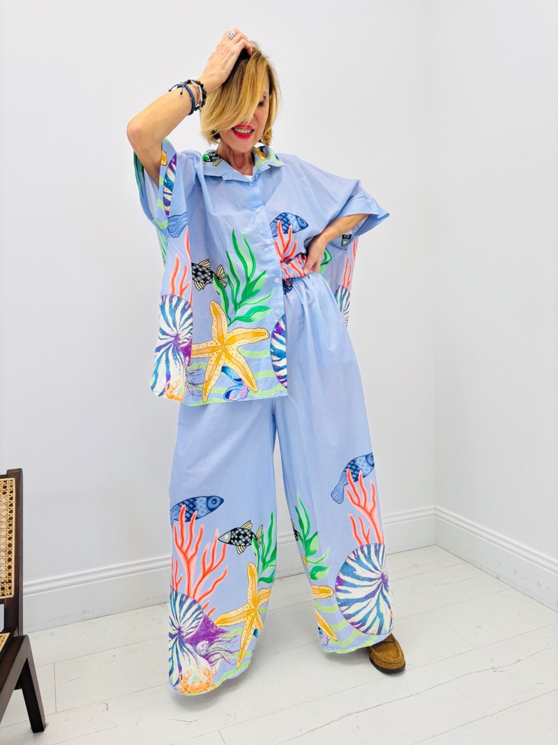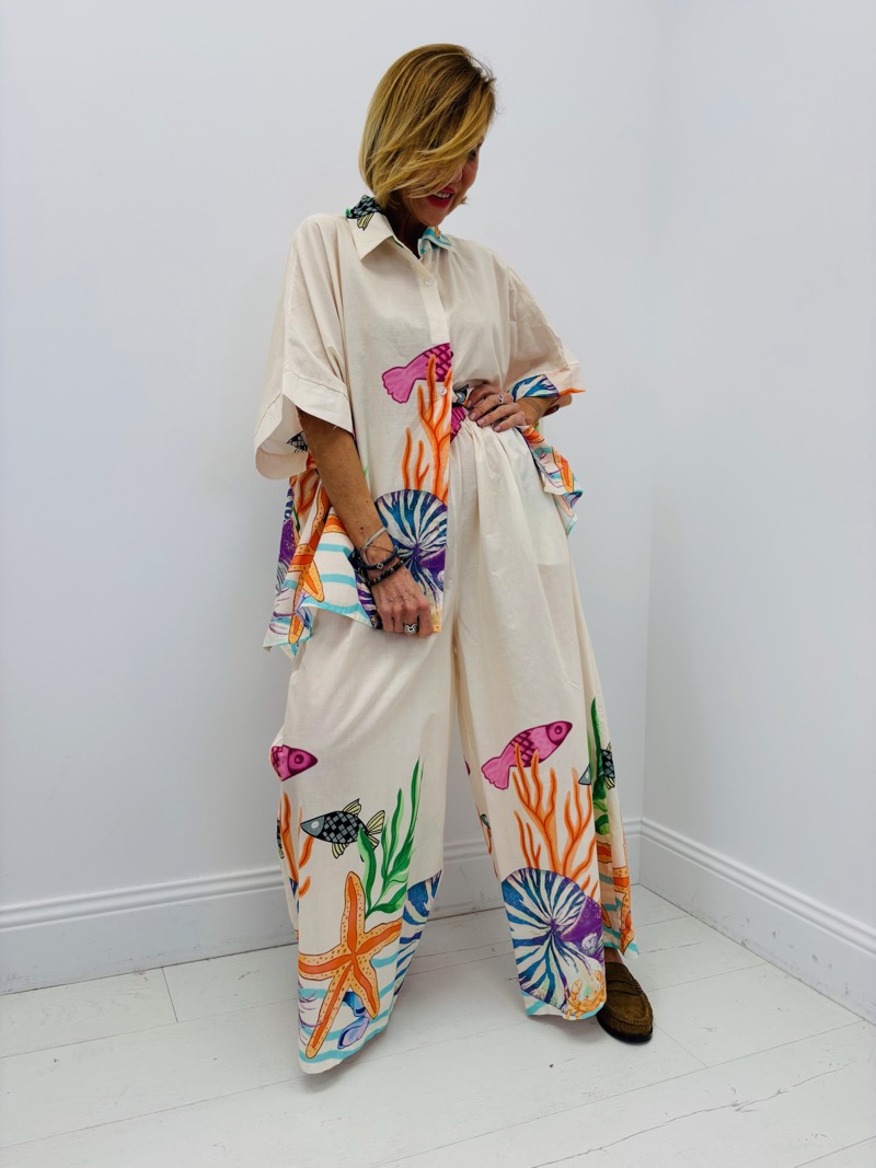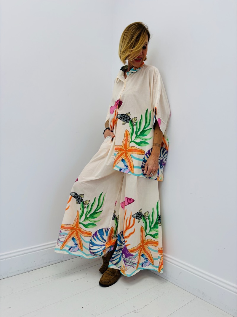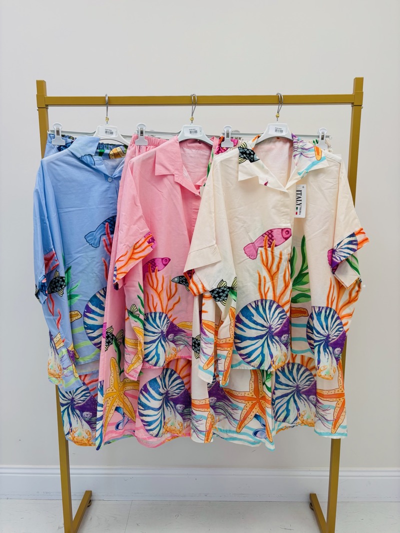 Apportez une touche marine à votre garde-robe avec cet ensemble imprimé. Confortable et élégant, parfait pour les journées ensoleillées.