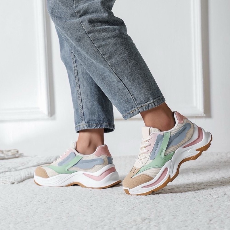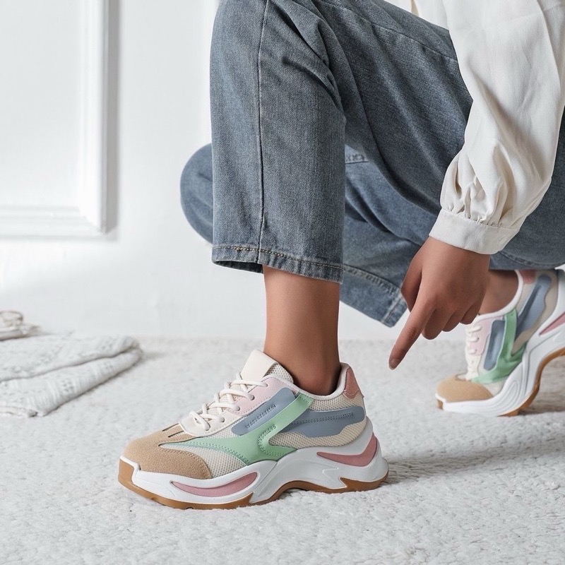 Déclinées dans des coloris doux et faciles à associer – tons neutres ou nuances pastel selon les versions – ces baskets s’intègrent parfaitement dans une collection urbaine et tendance, idéale pour une clientèle à la recherche de modèles actuels et polyvalents.