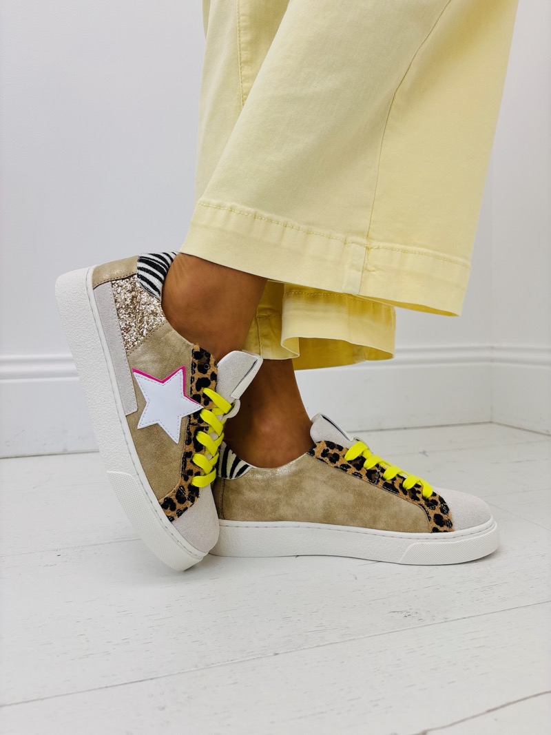 Baskets Statement à Étoile Contrastée et Détails Animal Print