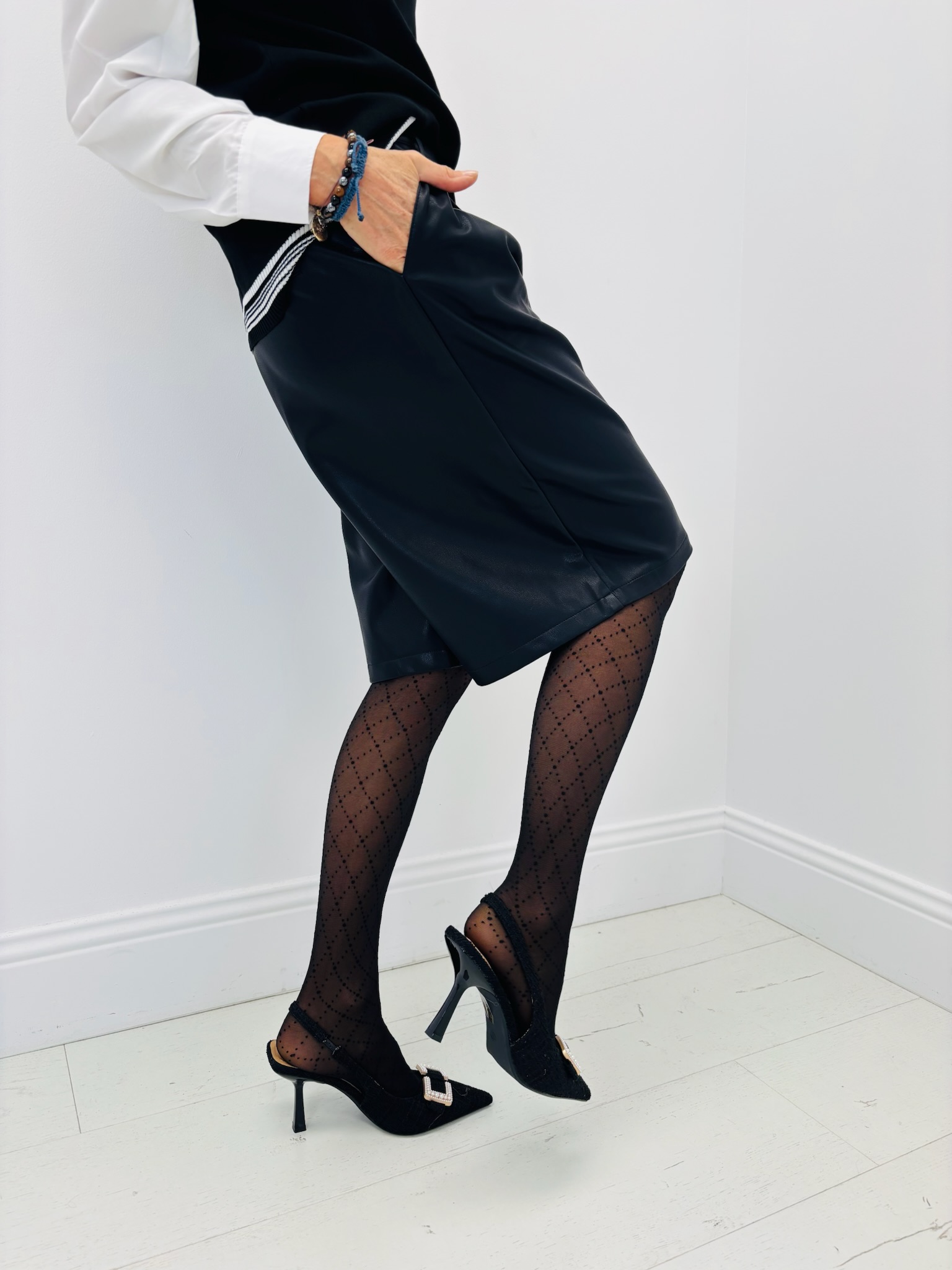 Le bermuda en simili cuir s’impose comme une pièce forte du dressing féminin.