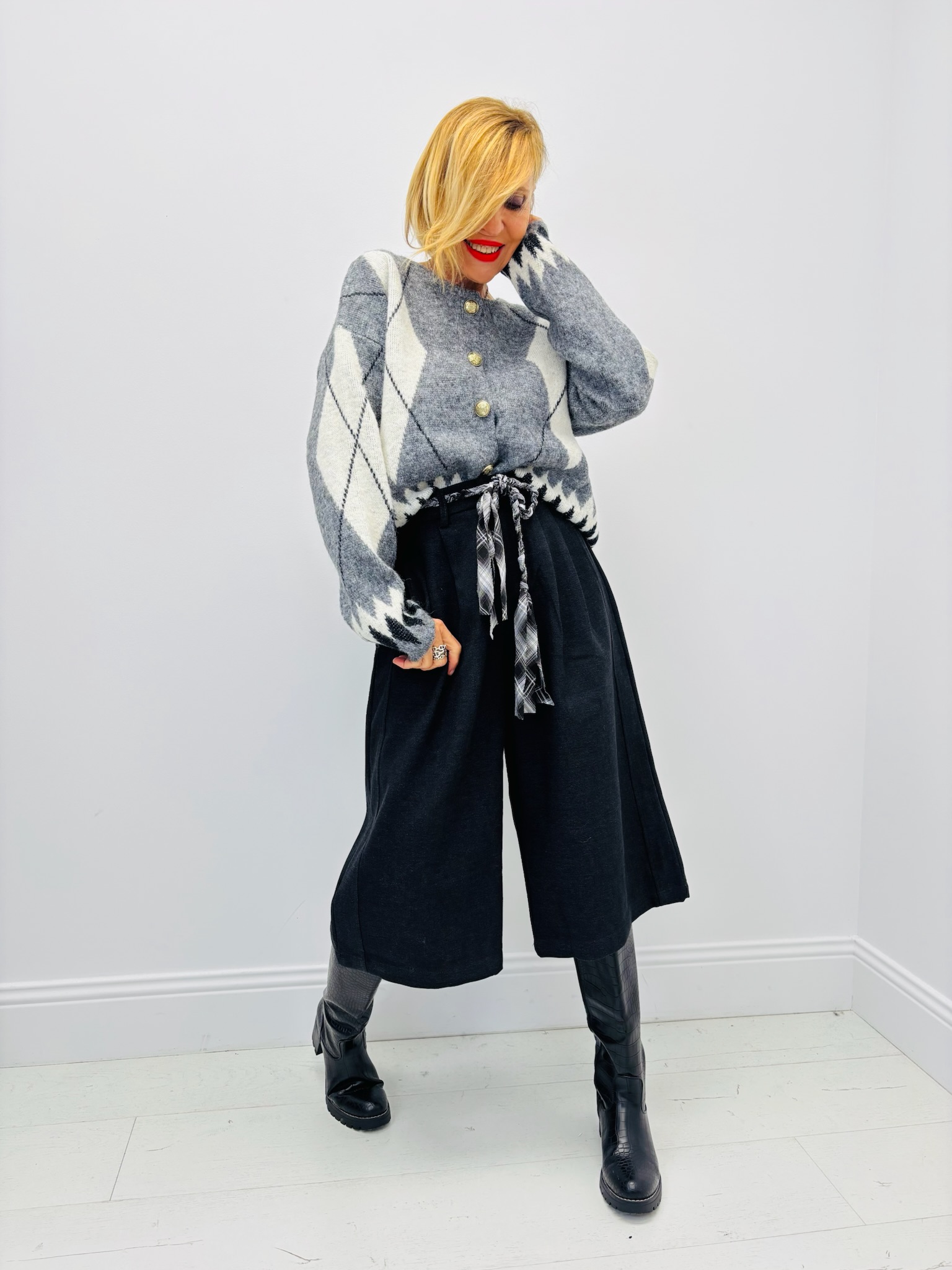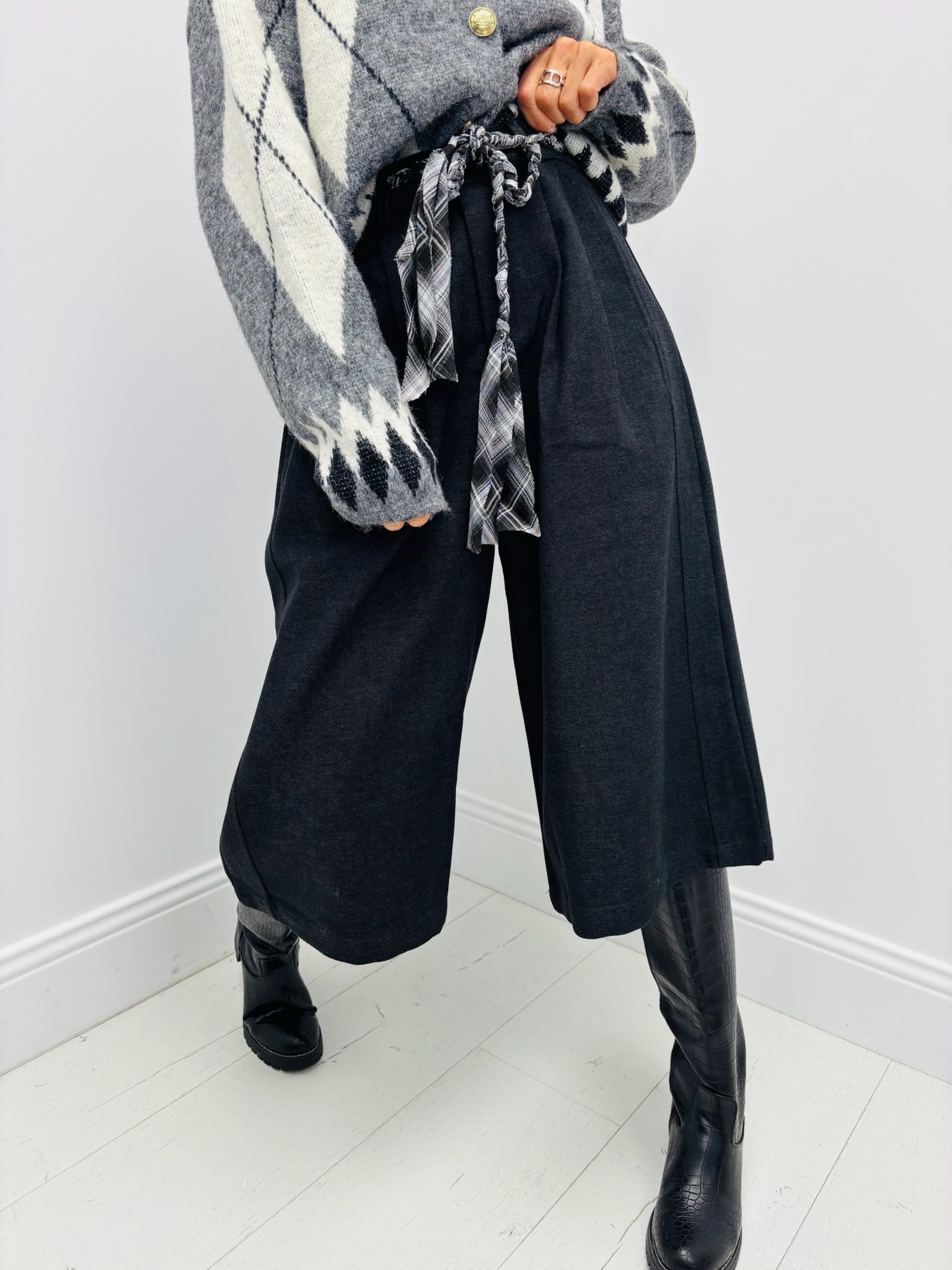 À porter avec un pull oversize ou une chemise fluide pour un look chic et contemporain. Idéal avec des bottes hautes pour une allure féminine et affirmée.