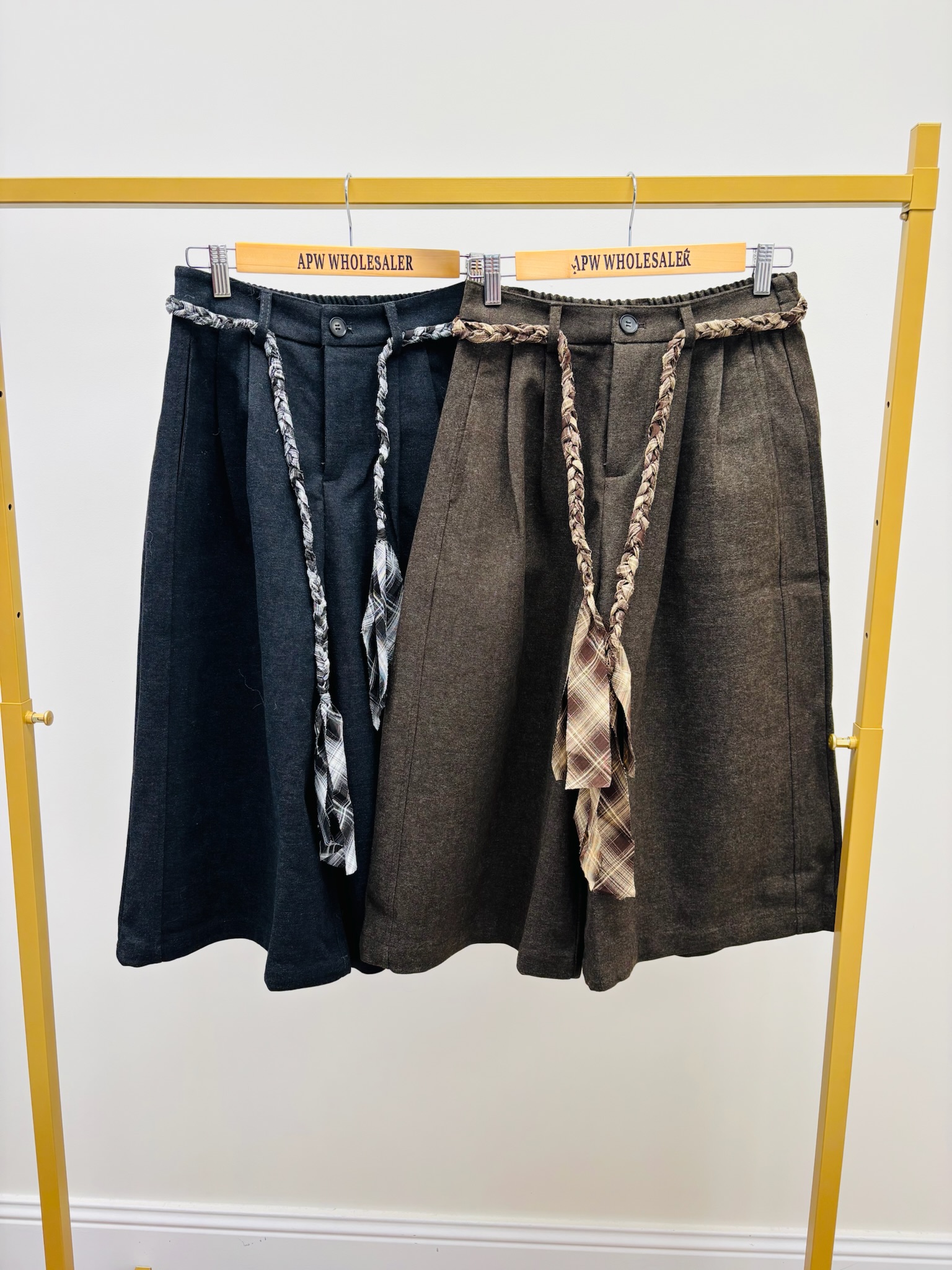 Un bermuda élégant et tendance, parfait pour un look automnal chic et décontracté. Sa coupe ample et sa ceinture tressée en tissu contrasté apportent une touche mode tout en assurant un confort absolu.