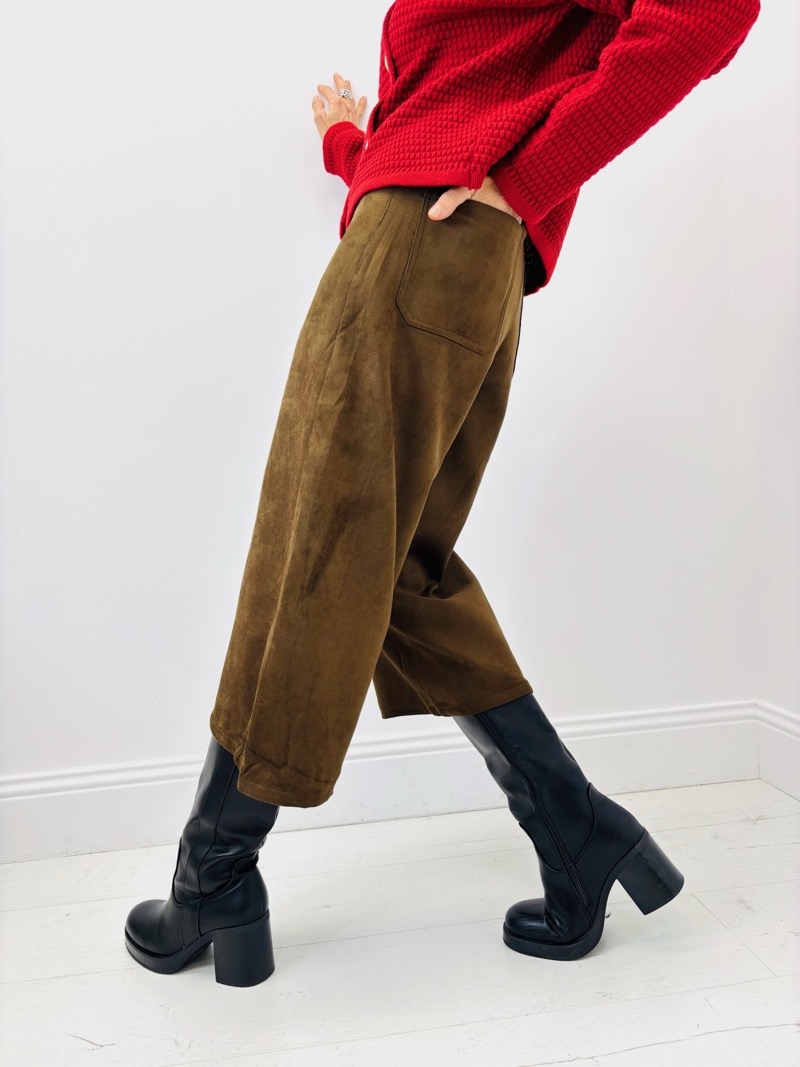 Un bermuda tendance en suédine douce, au toucher velours et au tombé impeccable. Sa coupe large et fluide apporte un look moderne, très en vogue cette saison, tout en offrant un confort incomparable. La taille haute structurée, les poches pratiques et la matière suédée donnent à cette pièce une allure élégante, chaleureuse et facile à porter.
