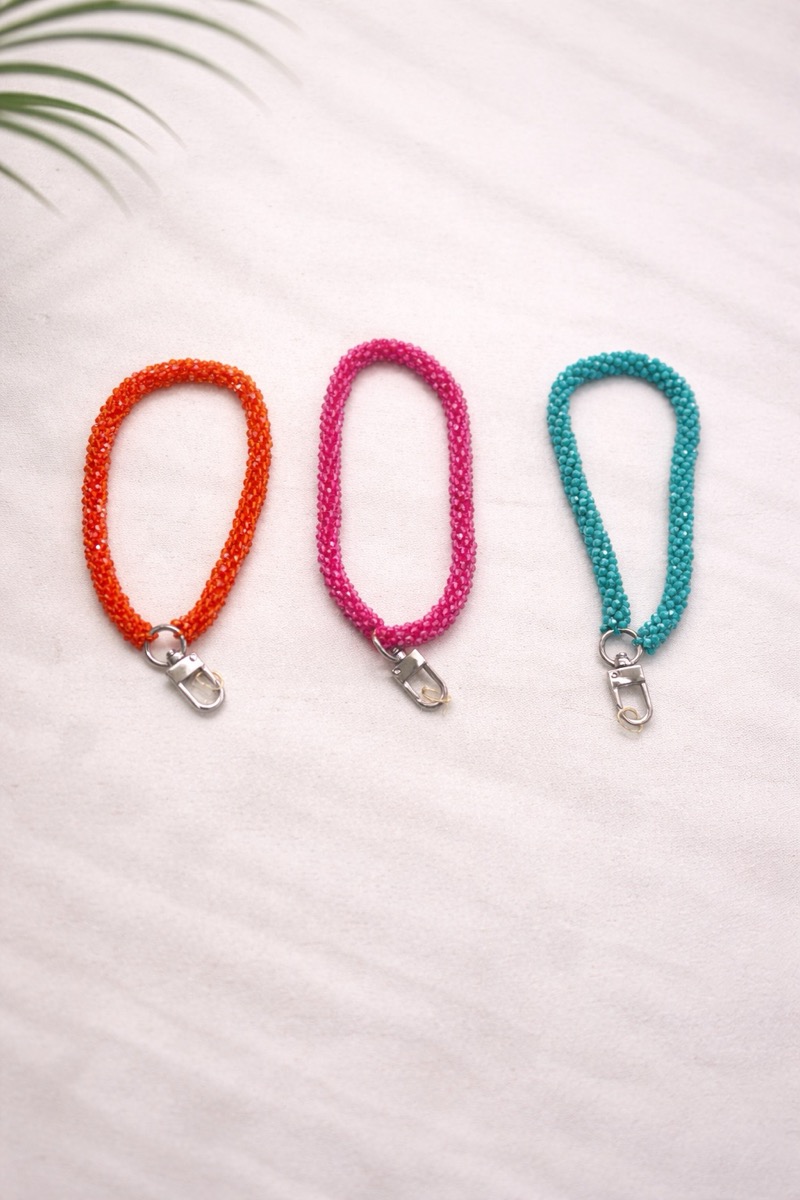Composé de petites perles montées en corde souple, il offre une excellente prise en main et sécurise le téléphone tout en ajoutant une dimension mode. Sa taille compacte permet de le porter au poignet ou de l’utiliser comme accessoire décoratif.