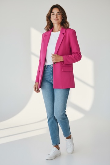 Ce blazer se porte aussi bien en total look tailleur pour une silhouette élégante et affirmée, qu’avec un jean et une chemise pour un style city chic. Associé à des baskets pour un contraste moderne ou à des chaussures plus habillées pour un rendu sophistiqué, il devient une pièce essentielle du vestiaire féminin contemporain.