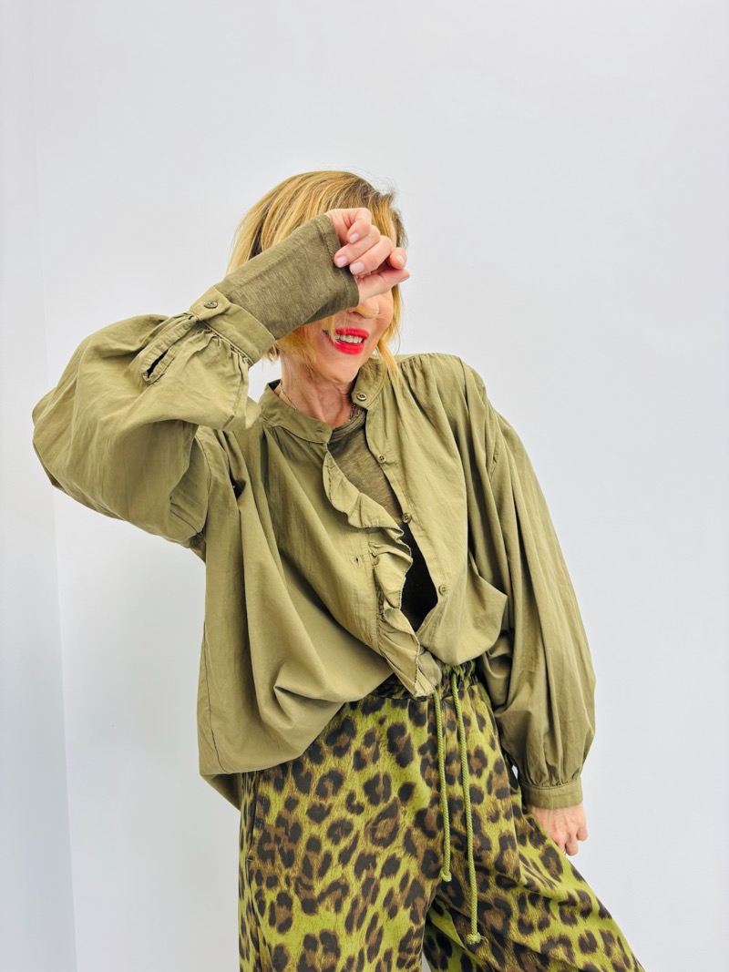 Portée avec un pantalon imprimé, un jean, un pantalon fluide ou une jupe, cette blouse apporte immédiatement une touche chic et féminine à la tenue. Elle se porte aussi bien pour un look de journée élégant que pour une silhouette plus travaillée, associée à des accessoires sobres ou plus marqués.