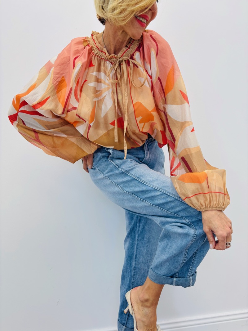Cette blouse fluide séduit immédiatement par son tombé aérien et son imprimé raffiné. Pensée pour les boutiques recherchant des pièces féminines, faciles à associer et à forte valeur perçue, elle combine élégance naturelle et confort absolu.