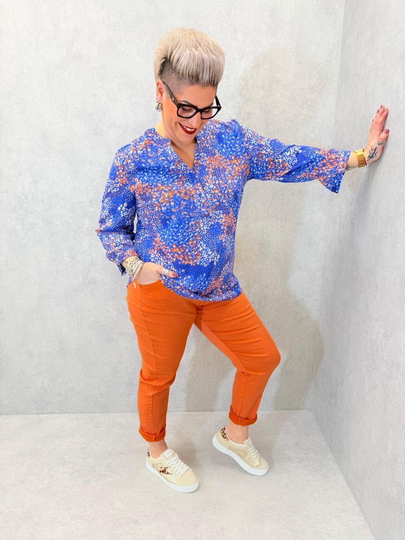 Portez cette blouse imprimée grande taille avec un pantalon uni ou un jean taille haute pour équilibrer la silhouette et mettre en valeur l’imprimé. Pour un look plus habillé, associez-la à un pantalon fluide et des accessoires dorés. En version casual chic, elle se marie parfaitement avec un jean brut et des baskets ou des sandales. Une pièce facile à styliser, idéale pour créer des looks lumineux et féminins en toute simplicité.