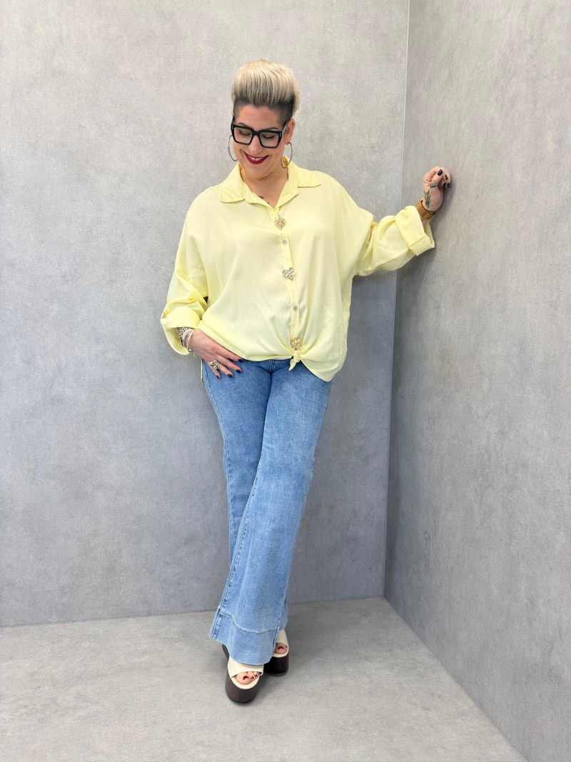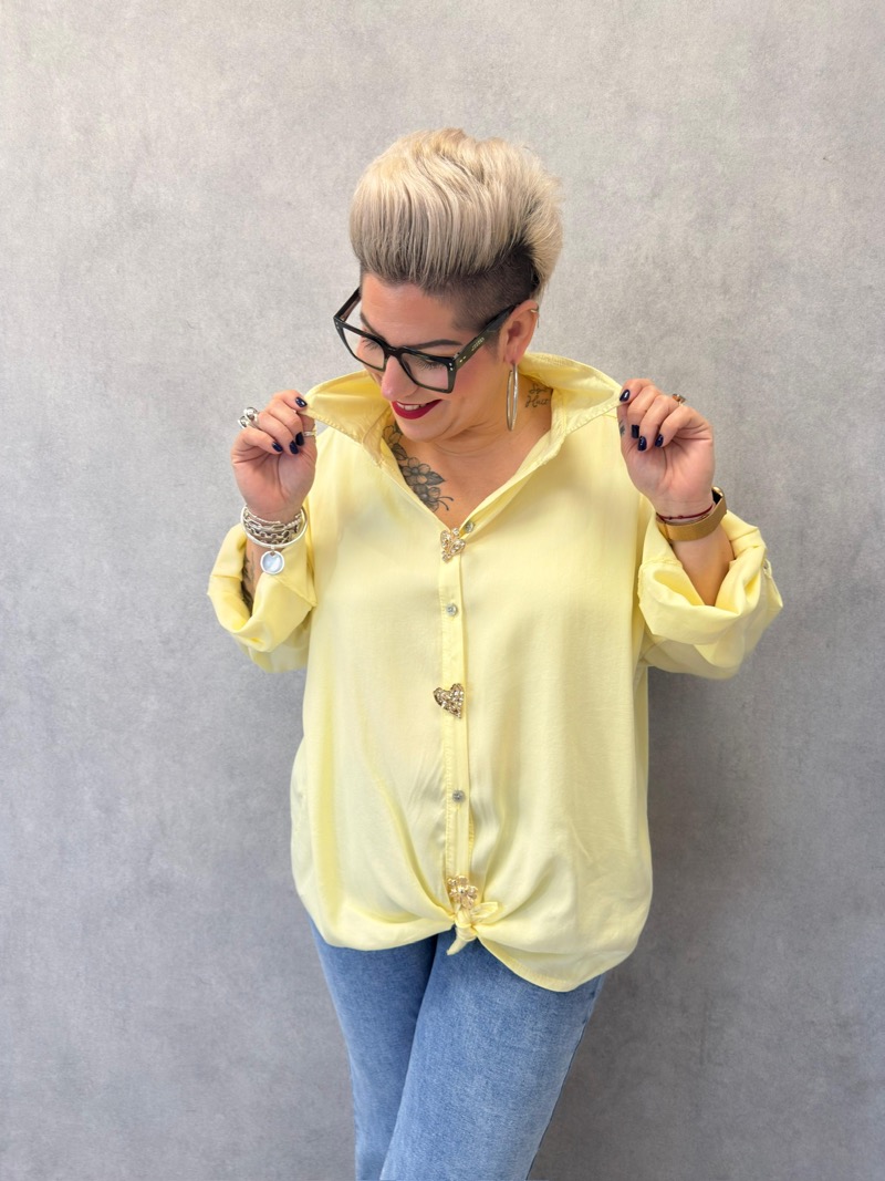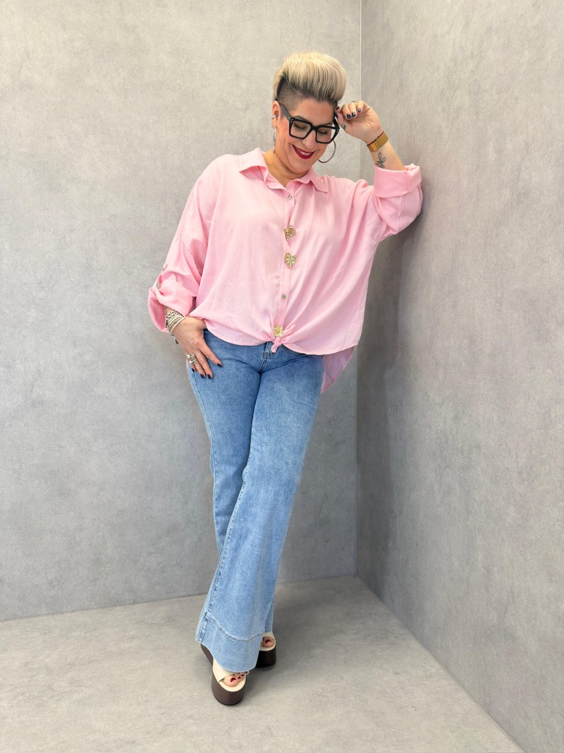 Le détail coup de cœur de ce modèle réside dans son boutonnage bijou discret, qui ajoute une touche raffinée et féminine sans en faire trop. Les manches longues retroussables permettent d’adapter le style selon l’envie et la saison, pour un rendu plus décontracté ou plus habillé. Le bas arrondi de la blouse permet un porté fluide, aussi élégant rentré dans un pantalon que laissé libre sur les hanches.
