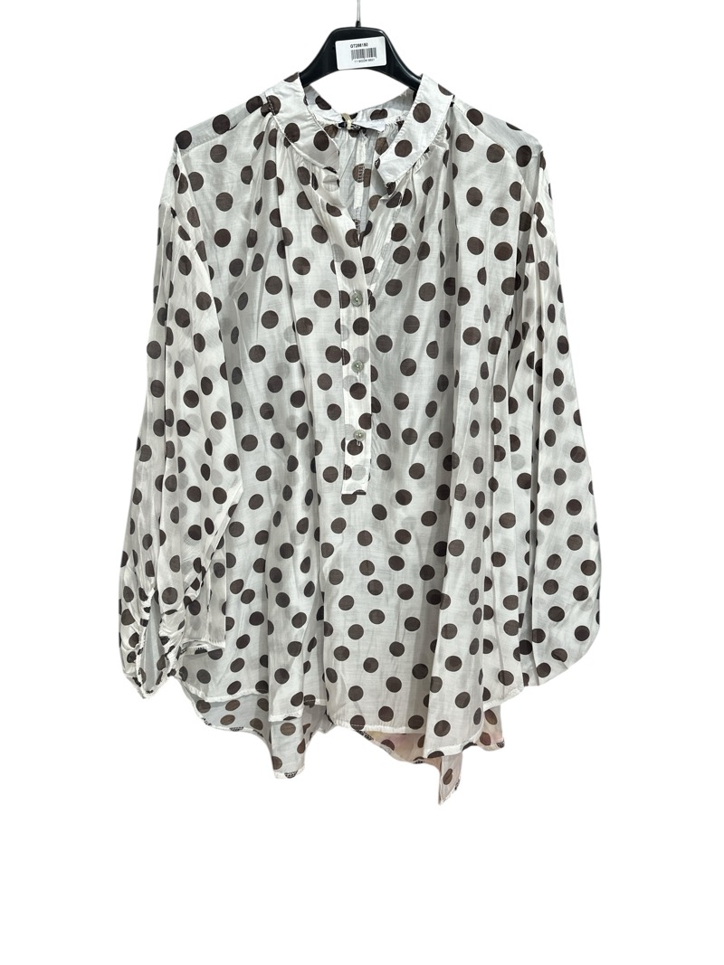 Confectionnée dans une matière légère et aérienne, cette blouse assure un tombé souple qui accompagne les mouvements avec grâce. Son col délicatement froncé apporte une note féminine subtile, tandis que l’ouverture boutonnée sur le devant structure la silhouette sans la marquer. Les manches longues légèrement bouffantes, resserrées aux poignets, équilibrent les volumes et créent une allure élégante et harmonieuse.