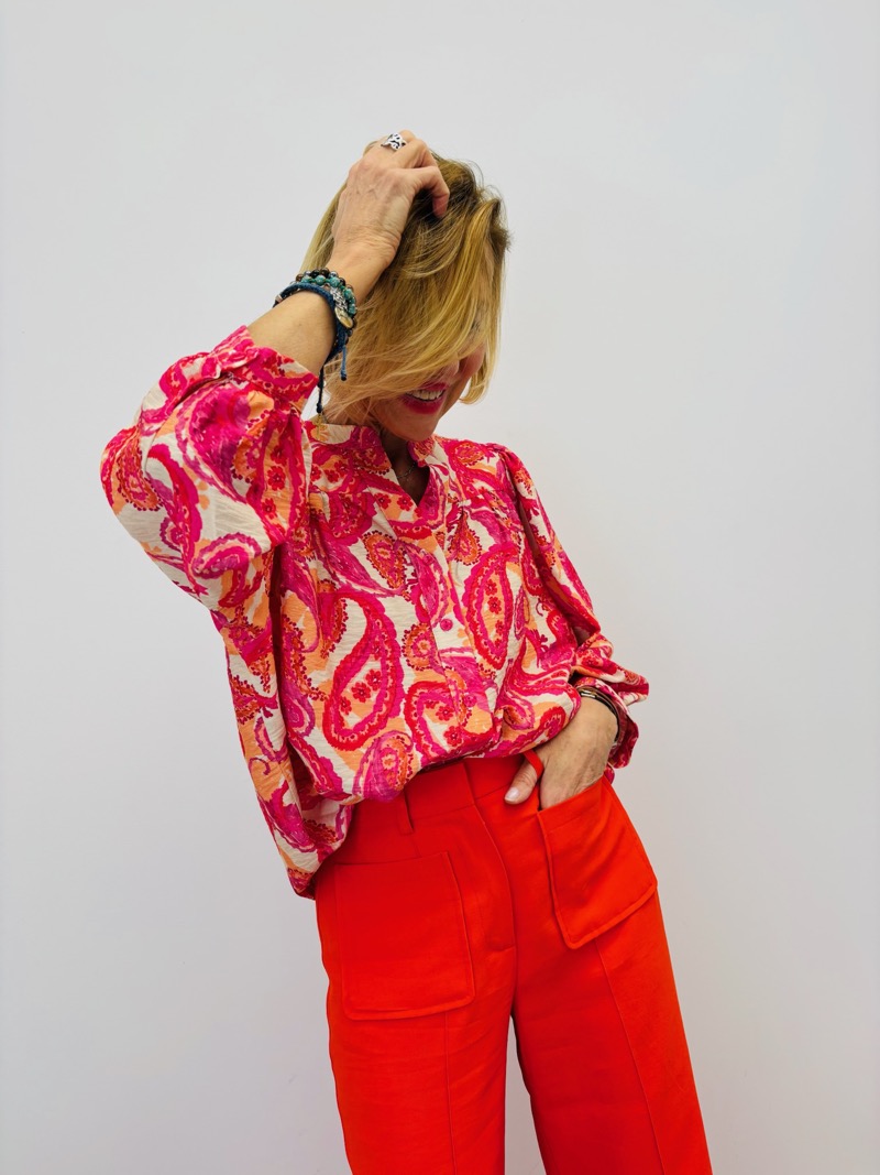 Une pièce vibrante qui attire immédiatement le regard. Cette blouse imprimée signée RUEDESABBESSES séduit par ses motifs forts et ses harmonies de couleurs audacieuses. Entre esprit paisley rose éclatant, jungle tropicale ou fleurs graphiques multicolores, chaque version affirme une identité mode puissante.