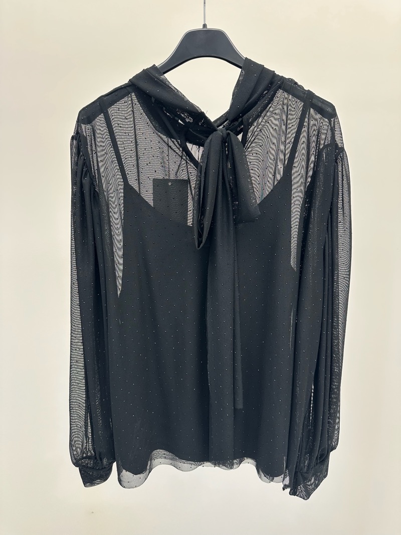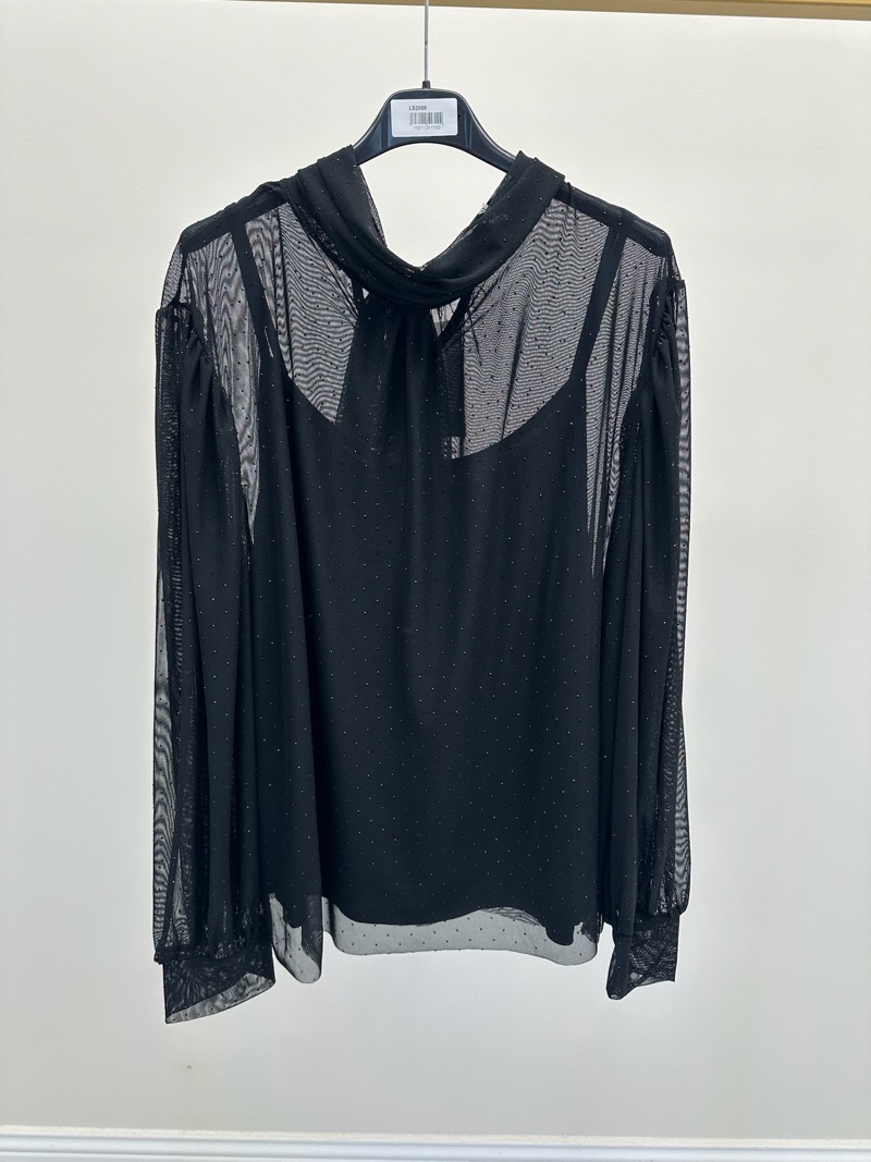 Blouse noire transparente à pois discrets – Élégance subtile grande taille
