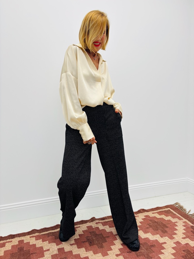À porter rentrée dans un pantalon tailleur pour une allure élégante, ou avec un jean pour un look plus décontracté mais sophistiqué.