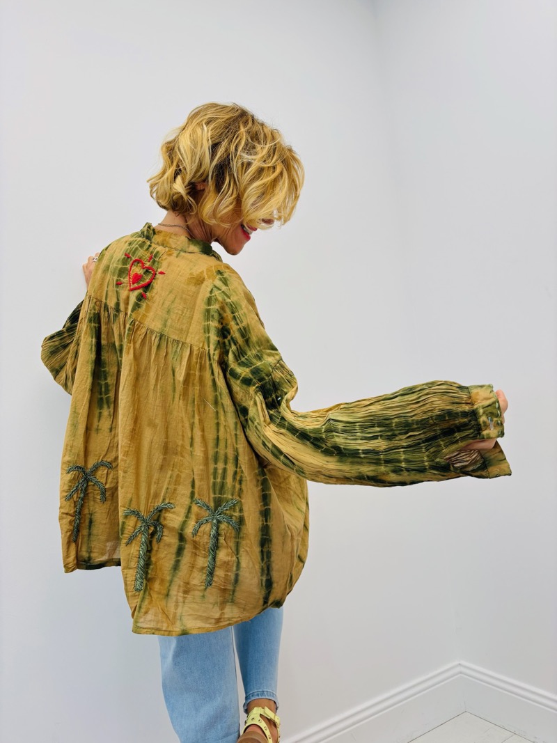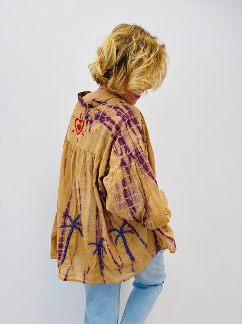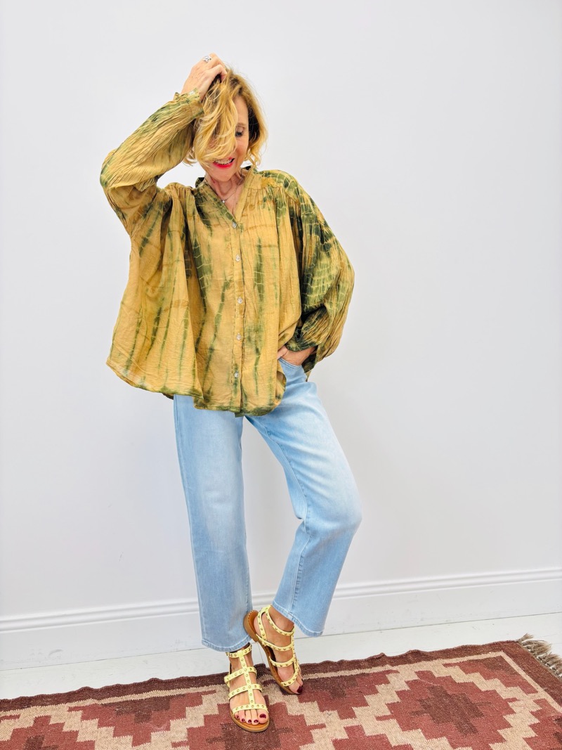 Authentique et pleine de caractère, cette blouse tie & dye signée Corner incarne l’esprit bohème dans sa version la plus naturelle et artisanale. Ses nuances terreuses et ses effets de teinture irréguliers apportent une dimension unique à chaque pièce, renforçant son charme exclusif.