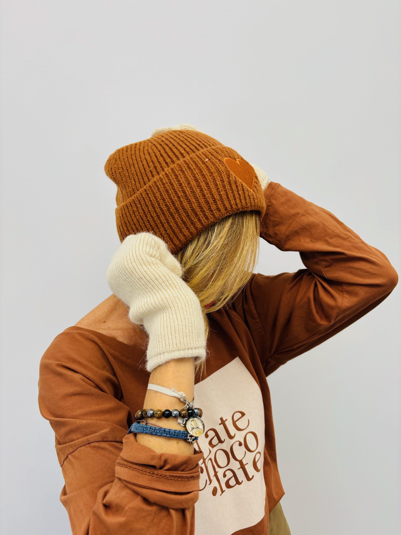 Un indispensable de l’hiver à la fois simple et mignon ❤️ Ce bonnet en maille côtelée séduit par sa douceur, son confort et son petit cœur brodé ton sur ton à l’avant. Parfait pour garder la tête au chaud avec style.