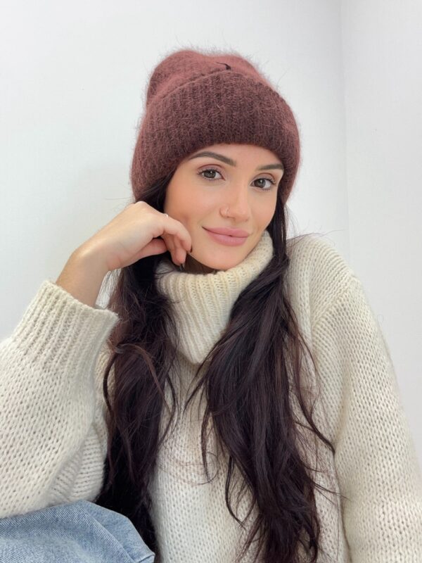 Ce bonnet épais en maille duveteuse est l’accessoire indispensable pour l’hiver.