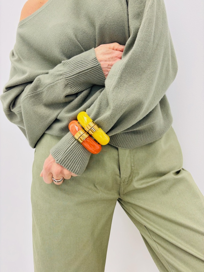 Sa forme arrondie et épurée permet un porté confortable au quotidien, tout en offrant un rendu visuel affirmé. Léger et agréable au poignet, ce bracelet est idéal pour être porté seul comme pièce forte ou associé à d’autres bijoux pour un effet accumulation tendance. Les coloris variés permettent de s’adapter à toutes les envies, des tons naturels aux nuances plus pop.