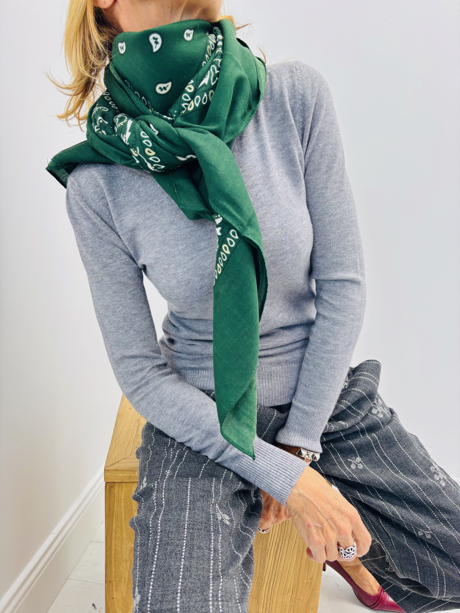 Un indispensable mode revisité : le foulard carré à motif bandana. Polyvalent et stylé, il se porte aussi bien autour du cou qu’en accessoire de cheveux ou même attaché à un sac.