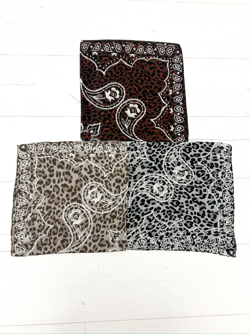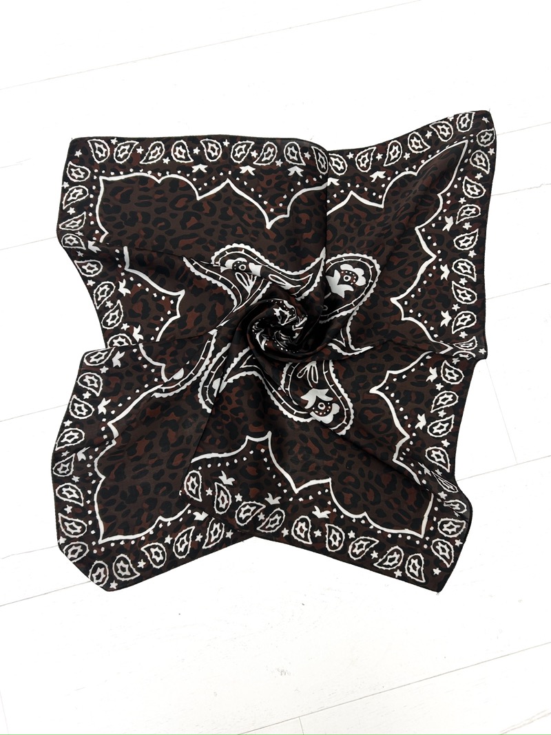 Carré Satinée Cachemire Léopard aux Détails Ornementaux