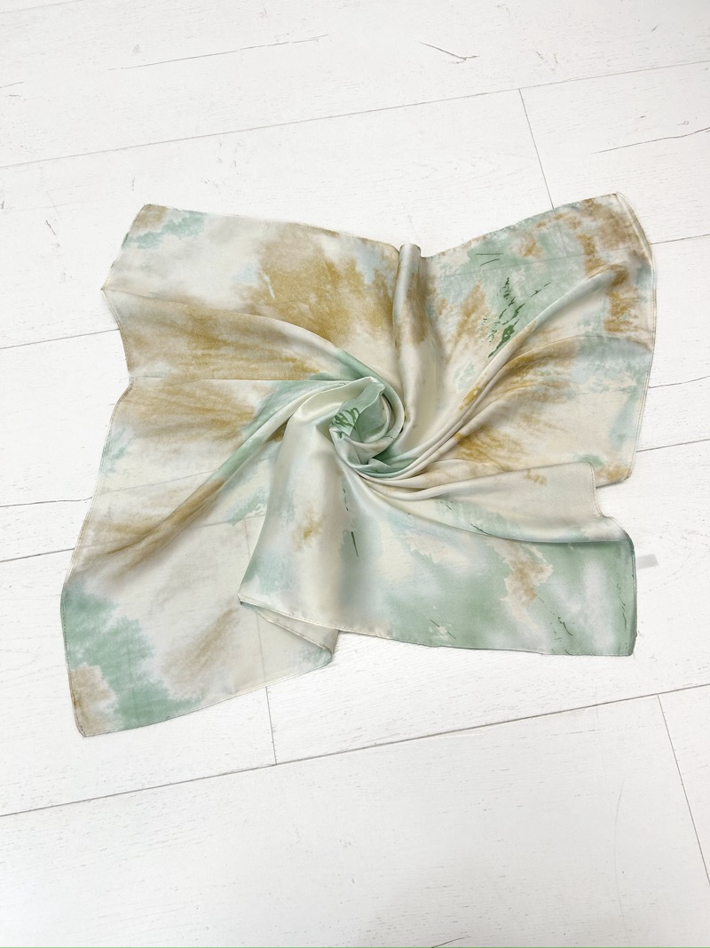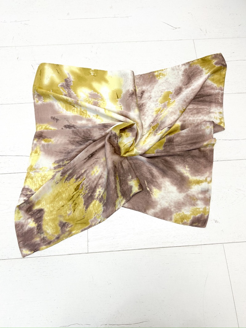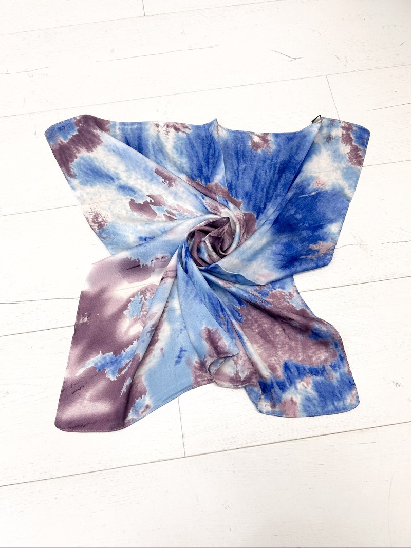 Les dégradés de couleurs apportent profondeur et mouvement, donnant un rendu à la fois artistique et naturel. Le format carré est particulièrement polyvalent : il se noue facilement autour du cou, se porte dans les cheveux, ou s’attache à un sac pour une touche mode discrète mais stylée.