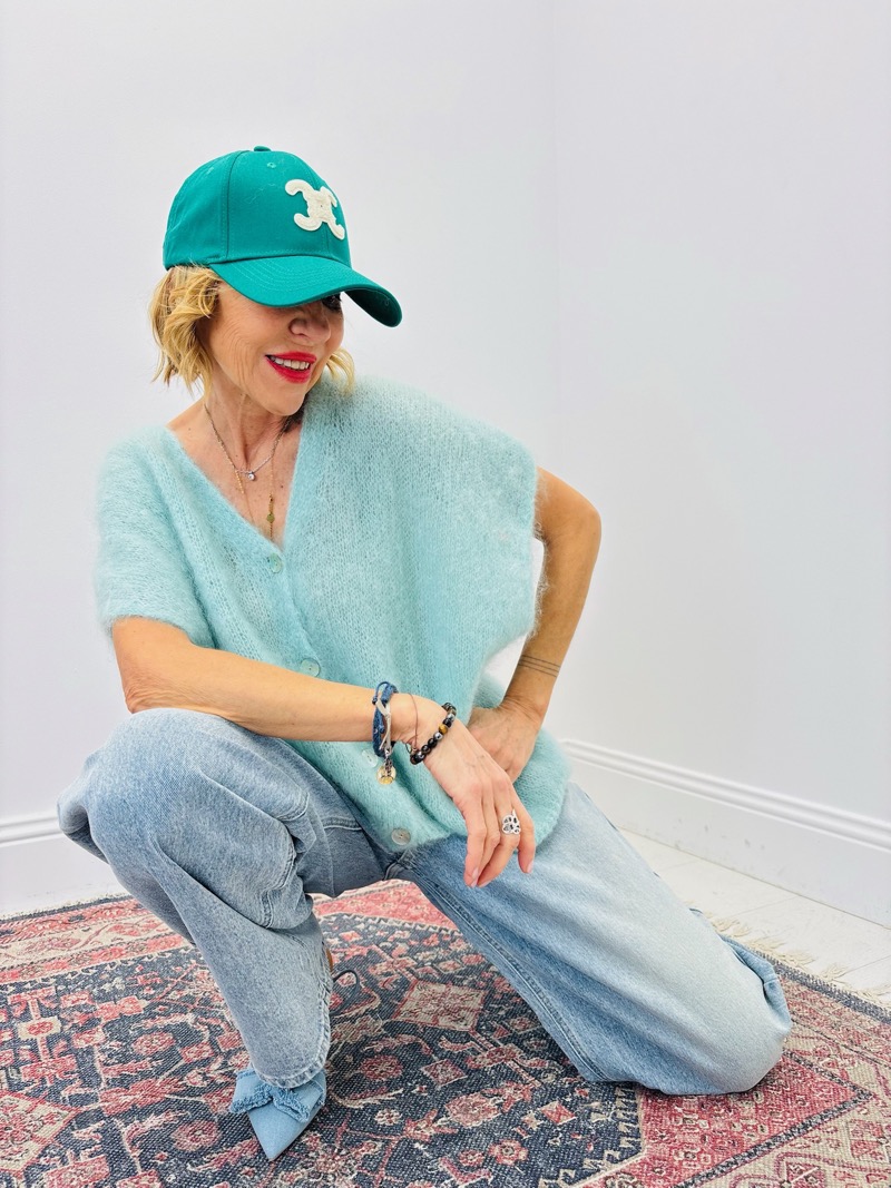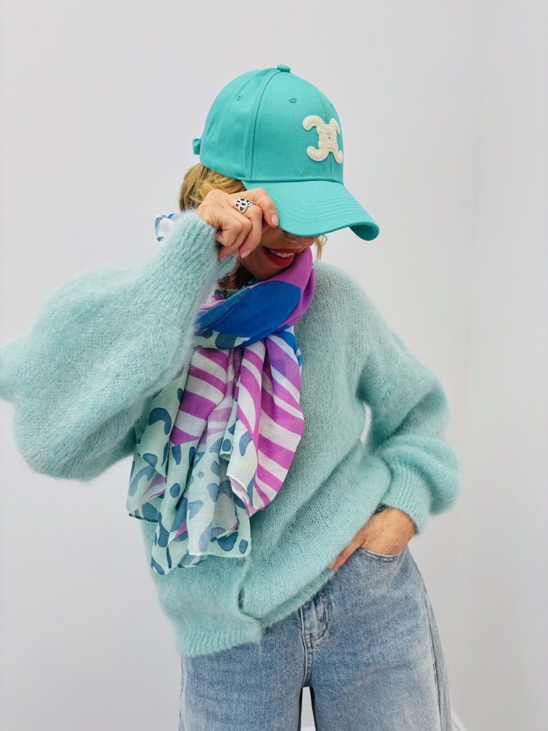 Portée avec un pull mohair, un cardigan coloré ou une tenue denim, cette casquette apporte une touche mode assumée et moderne. Elle est parfaite pour donner du caractère à un look simple ou renforcer un esprit street chic, tout en restant élégante et facile à porter au quotidien.