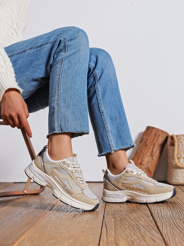 Ces baskets au look affirmé combinent design moderne et confort maximal. Leur semelle épaisse offre une bonne stabilité et une allure tendance, idéale pour donner du style à vos tenues casual. On aime l’imprimé tacheté façon camouflage revisité, contrasté par des empiècements en mesh et détails métallisés pour une touche urbaine chic.