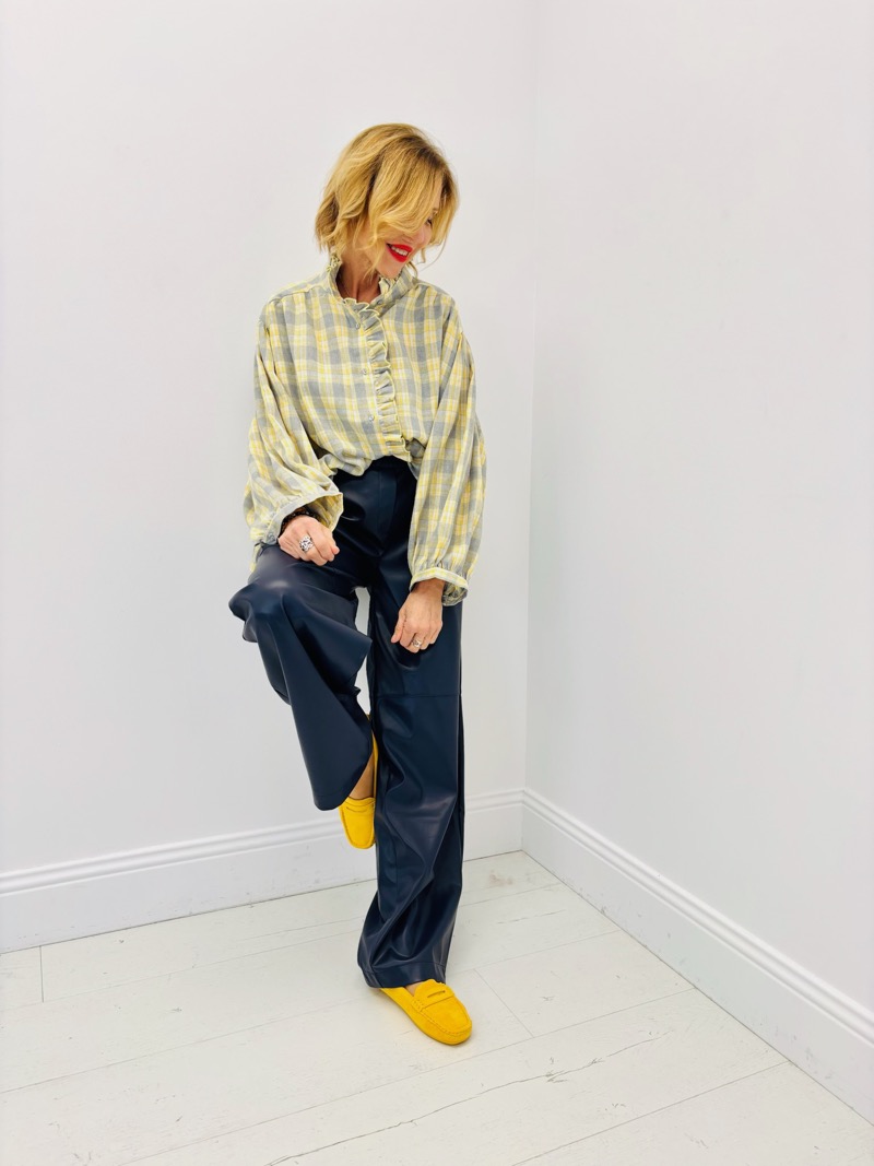 Portée avec un pantalon simili cuir, un jean ou un pantalon fluide, cette chemise crée une silhouette élégante et moderne. Elle se marie parfaitement avec des matières contrastantes pour un look tendance, ou avec un jean pour un esprit plus casual chic. À associer avec des baskets, mocassins ou talons, c’est une pièce polyvalente qui apporte douceur et caractère à toutes les tenues.