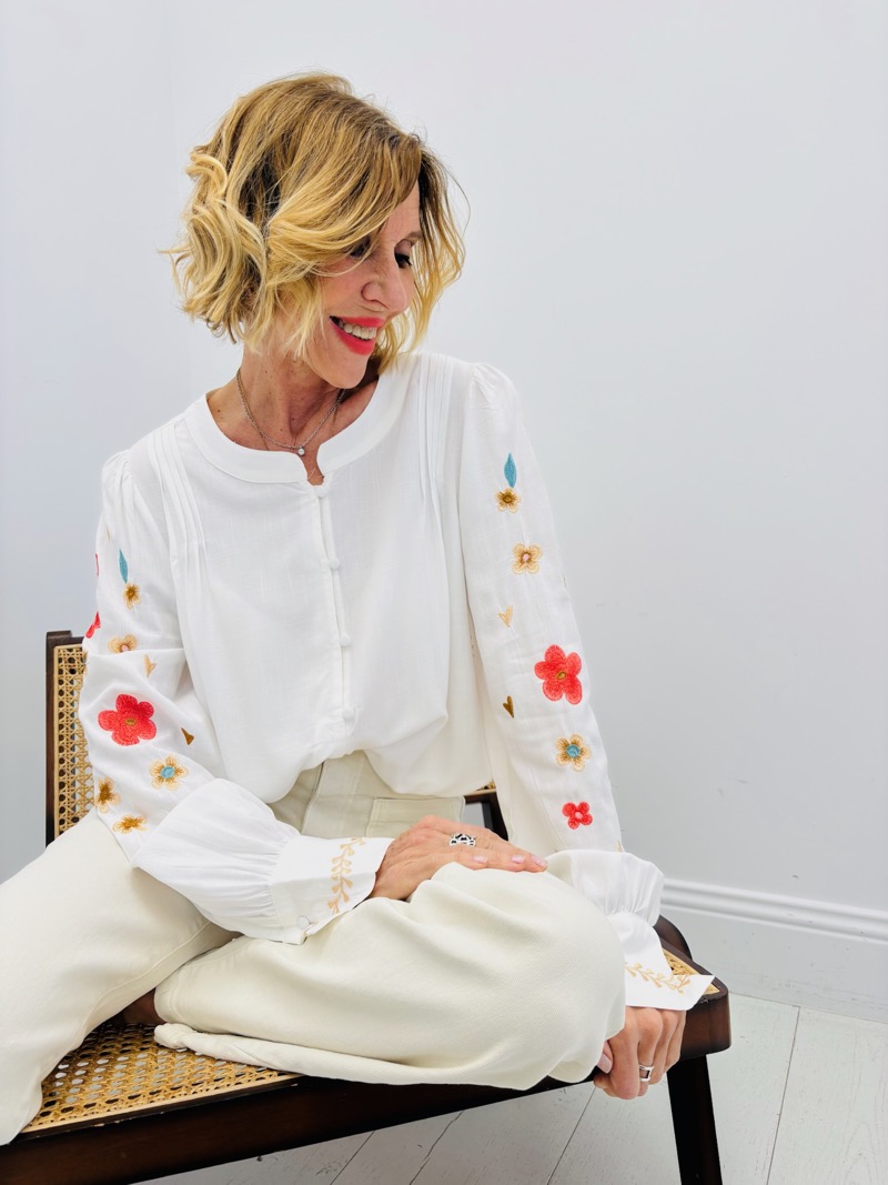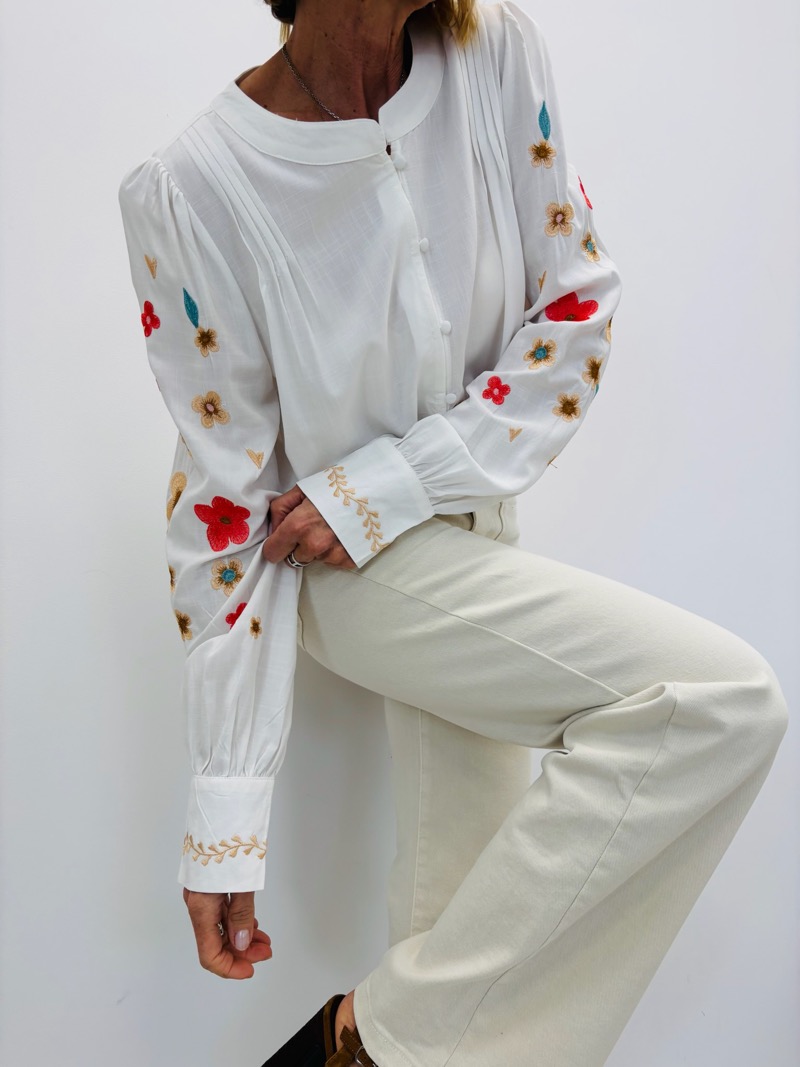 Découvrez cette chemise blanche ornée de détails floraux colorés, parfaite pour apporter une touche originale à votre tenue quotidienne. Son design élégant et soigné saura vous séduire.