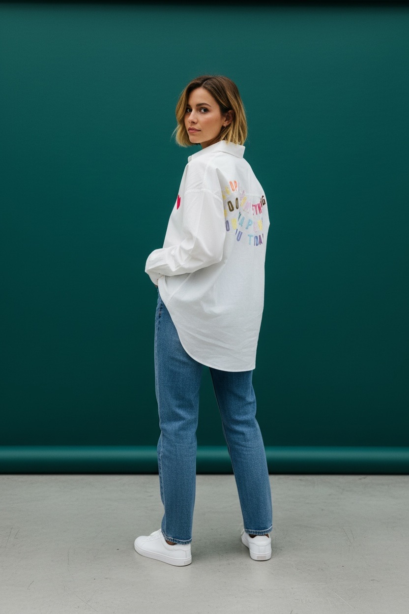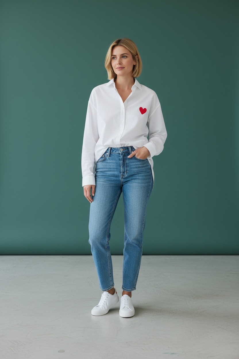 Cette chemise blanche à cœur brodé est une pièce à la fois simple et forte, pensée pour apporter une touche d’émotion et de modernité au vestiaire féminin. Confectionnée en 100 % coton, elle offre un confort naturel, une belle légèreté et une excellente respirabilité, idéale pour un porté quotidien en toute saison.