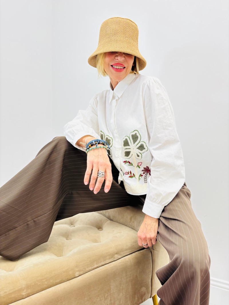 Les motifs inspirés de la nature apportent une touche bohème chic tout en restant élégants et faciles à associer. La coupe légèrement courte modernise la silhouette, tandis que les manches longues subtilement bouffantes ajoutent du volume et du caractère.