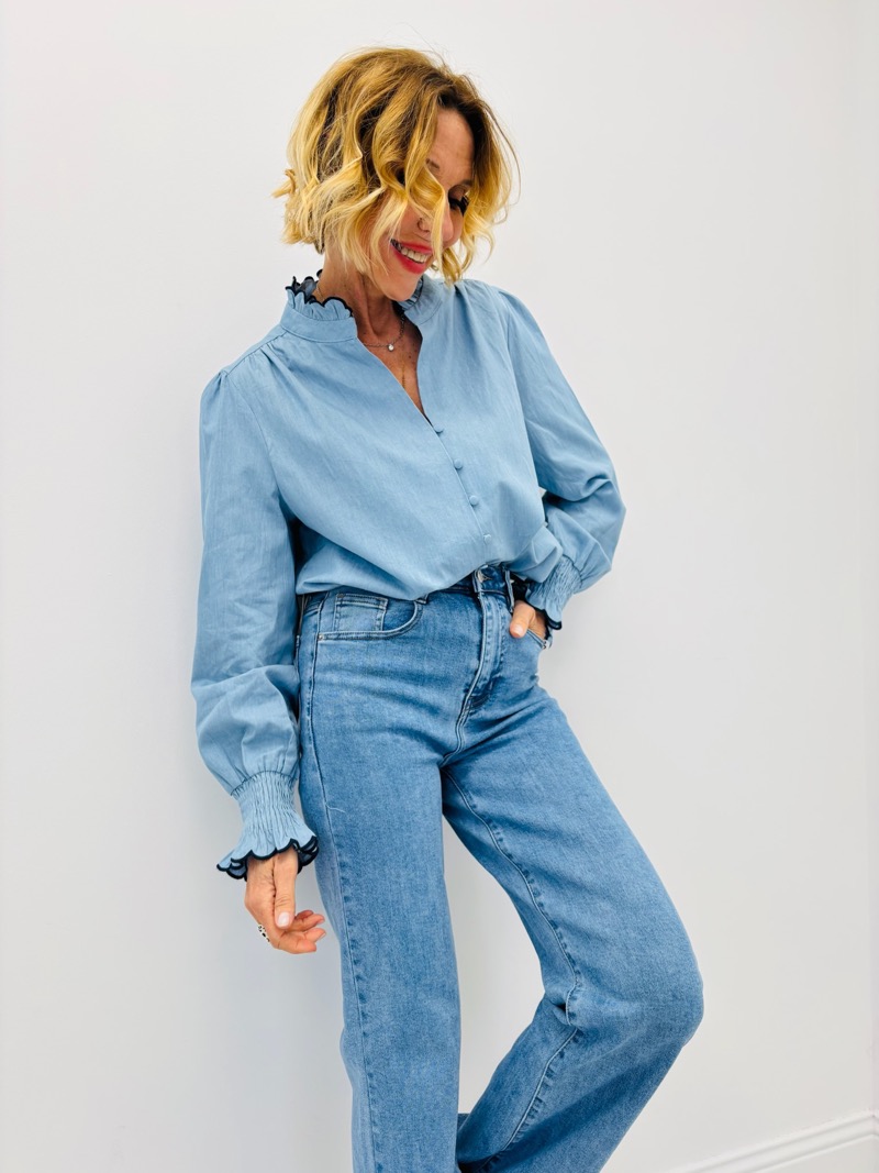 Portée avec un jean taille haute, cette chemise crée un look casual chic moderne.