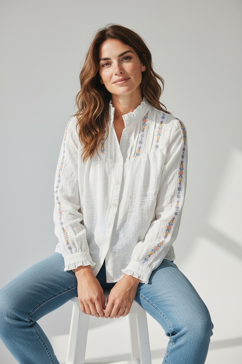 Chemise Brodée Col Volants Esprit Bohème