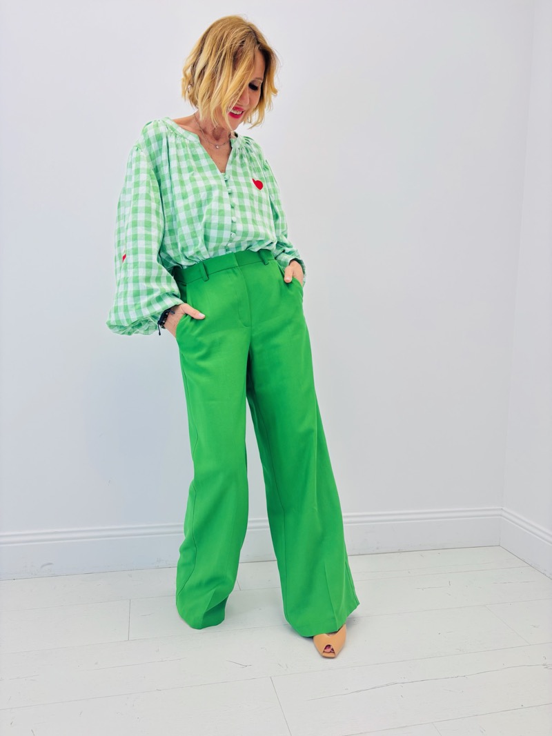 Avec un pantalon beige ou blanc pour un look lumineux et frais.