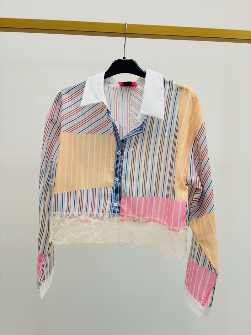 Chemise Courte Patchwork À Rayures Marque Vogue
