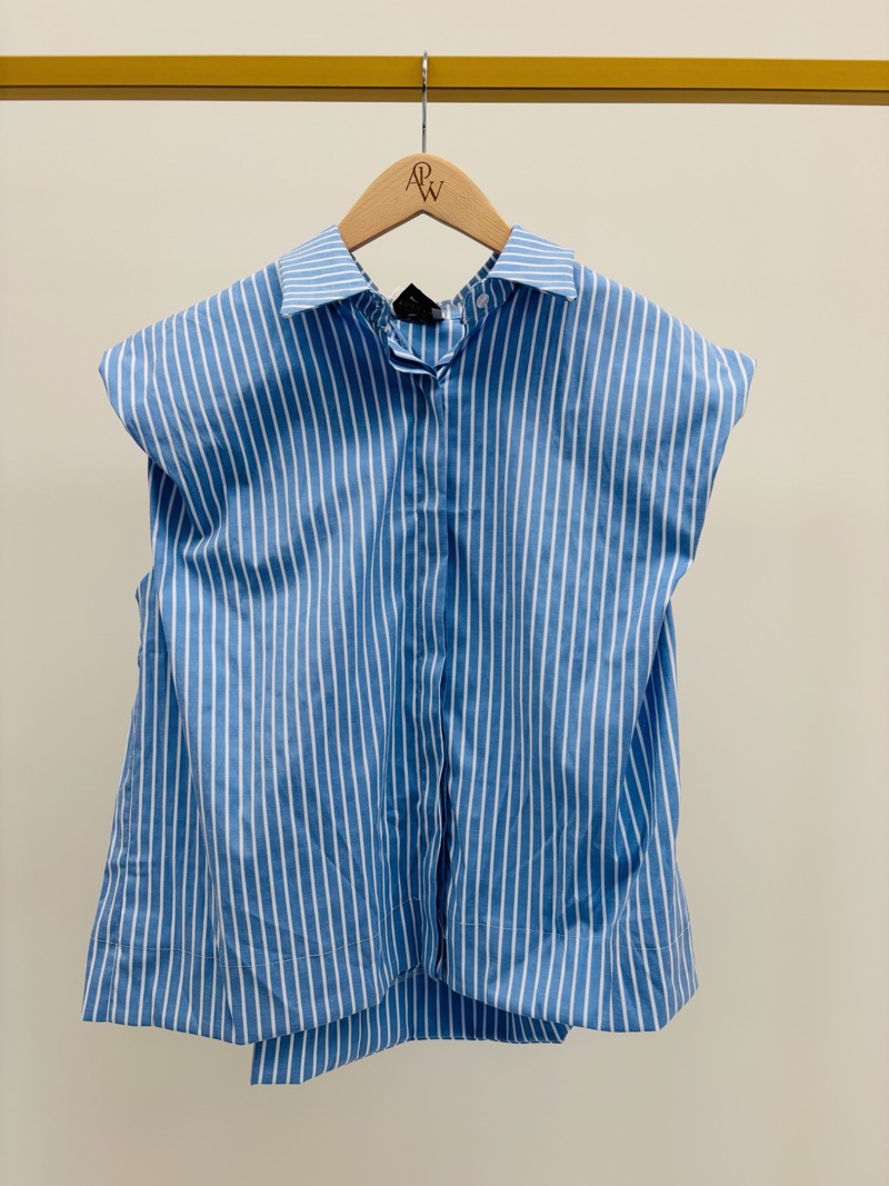 Cette chemise débardeur rayée revisite le classique de la chemise d’été avec une coupe moderne et des épaules légèrement structurées qui apportent immédiatement du caractère à la silhouette. Son design minimaliste et graphique en fait une pièce forte du vestiaire casual chic.