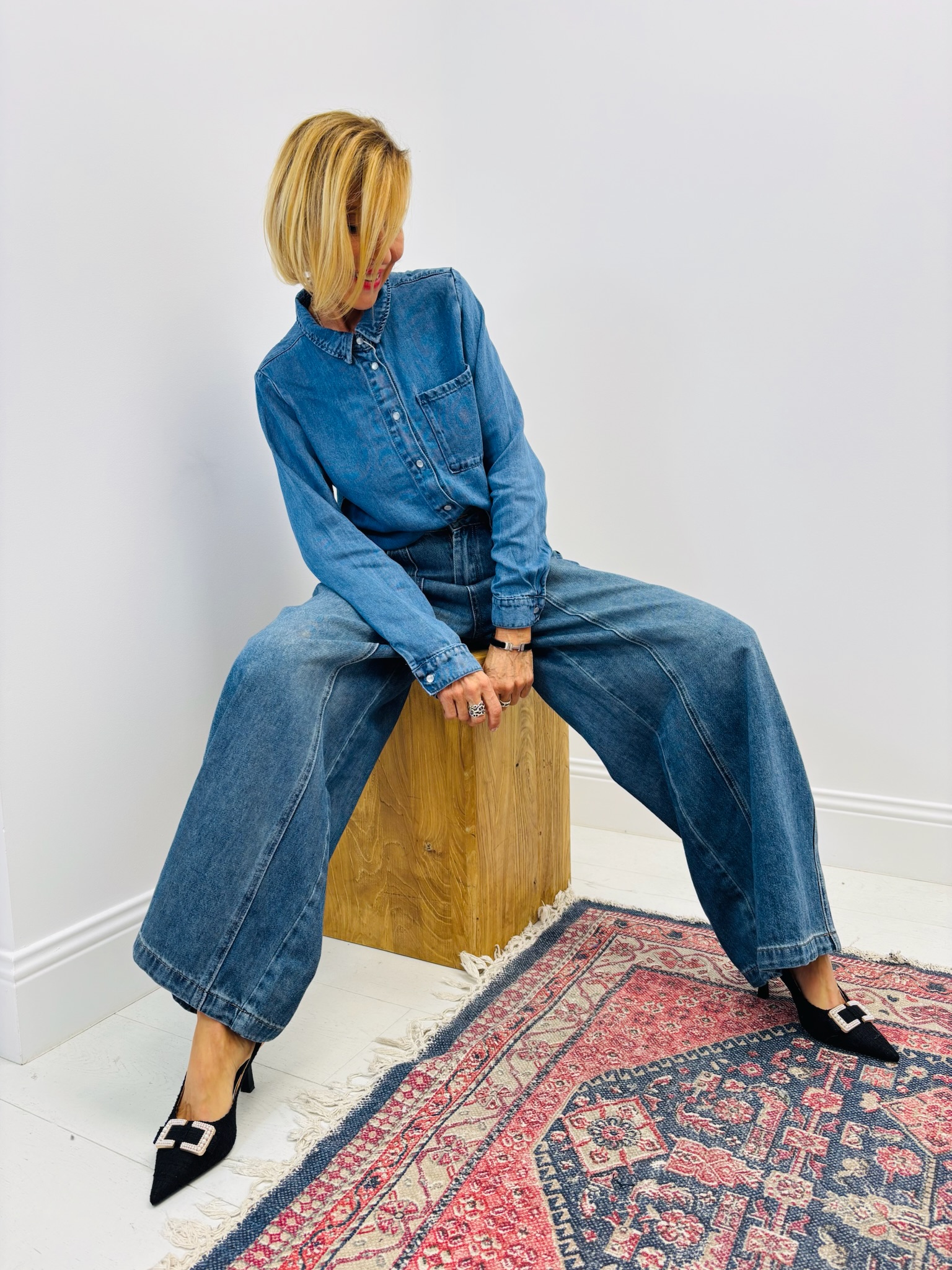Portez-la avec un jean large pour un total look denim tendance ou nouée à la taille sur une jupe longue pour un style plus féminin.