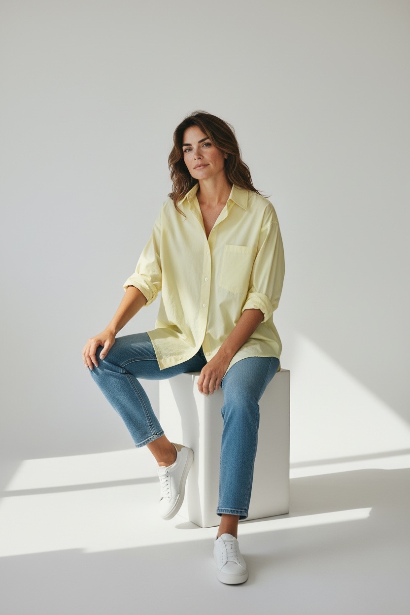 Proposée dans des coloris doux et lumineux, cette chemise s’intègre facilement dans toutes les collections, répondant aussi bien aux attentes d’une clientèle citadine que d’un dressing plus minimaliste. Un bas légèrement arrondi permet de la porter aussi bien rentrée que sortie, pour varier les silhouettes.