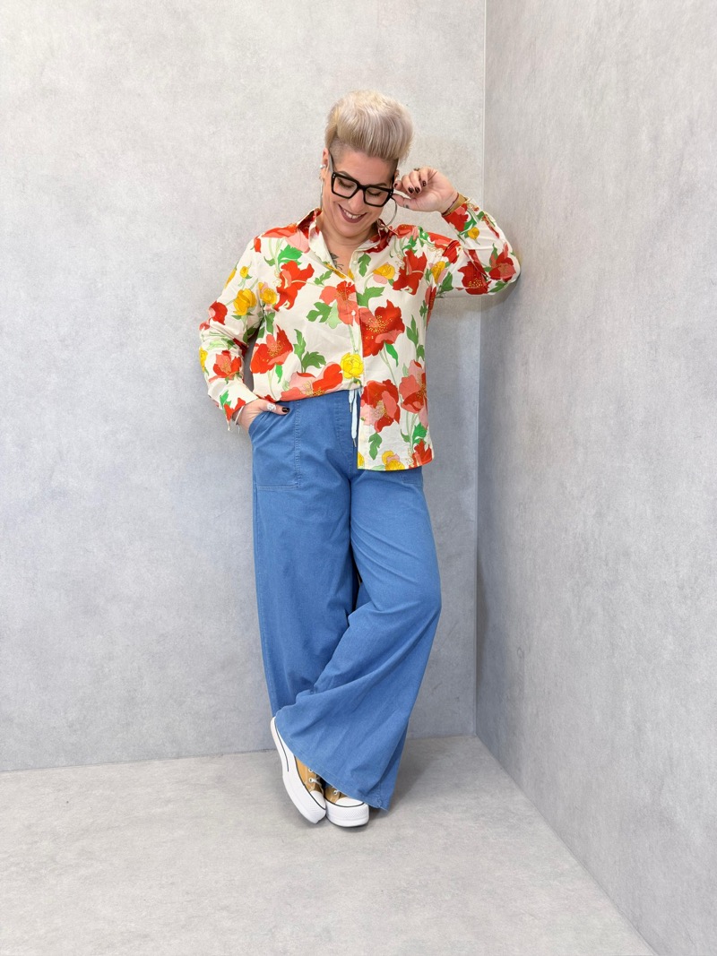 Véritable pièce coup de cœur, cette chemise fleurie grande taille illumine instantanément la silhouette grâce à son imprimé floral vibrant. Ses grandes fleurs rouges et jaunes sur fond clair apportent fraîcheur, féminité et modernité, tout en restant élégantes et faciles à porter.