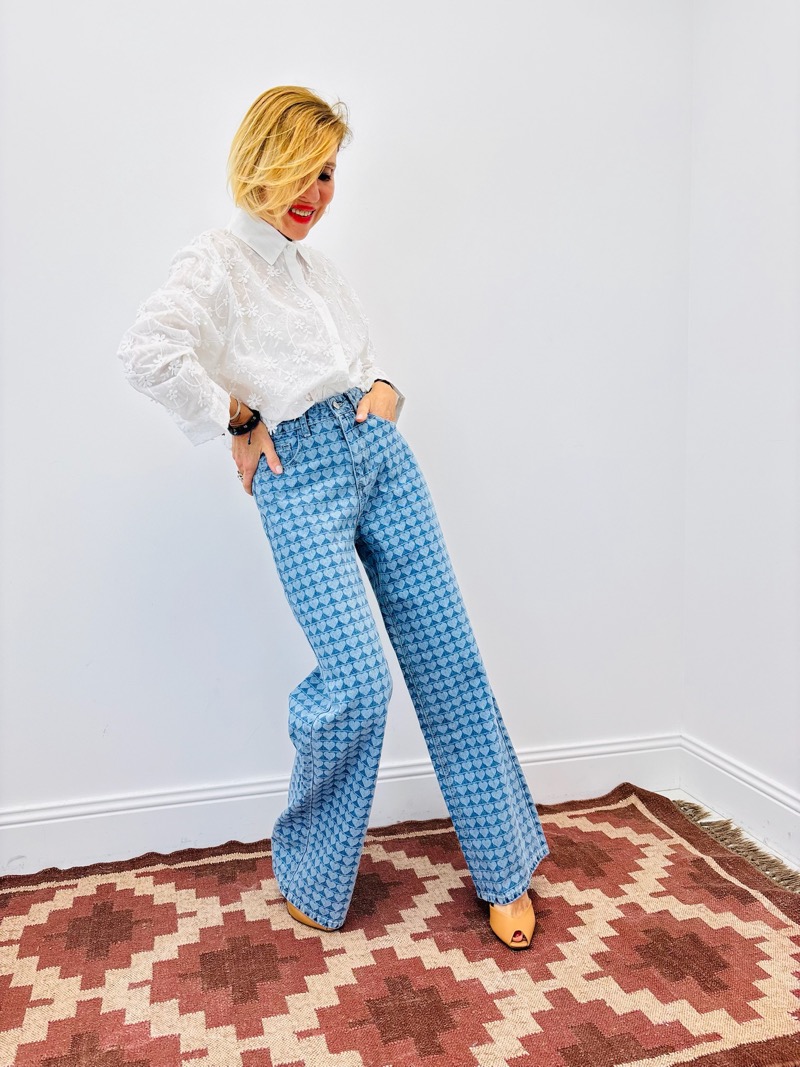 Cette chemise se porte parfaitement avec un jean taille haute pour une silhouette fraîche et féminine. Associée à un denim à motif ou à un pantalon blanc, elle crée un look lumineux et moderne.