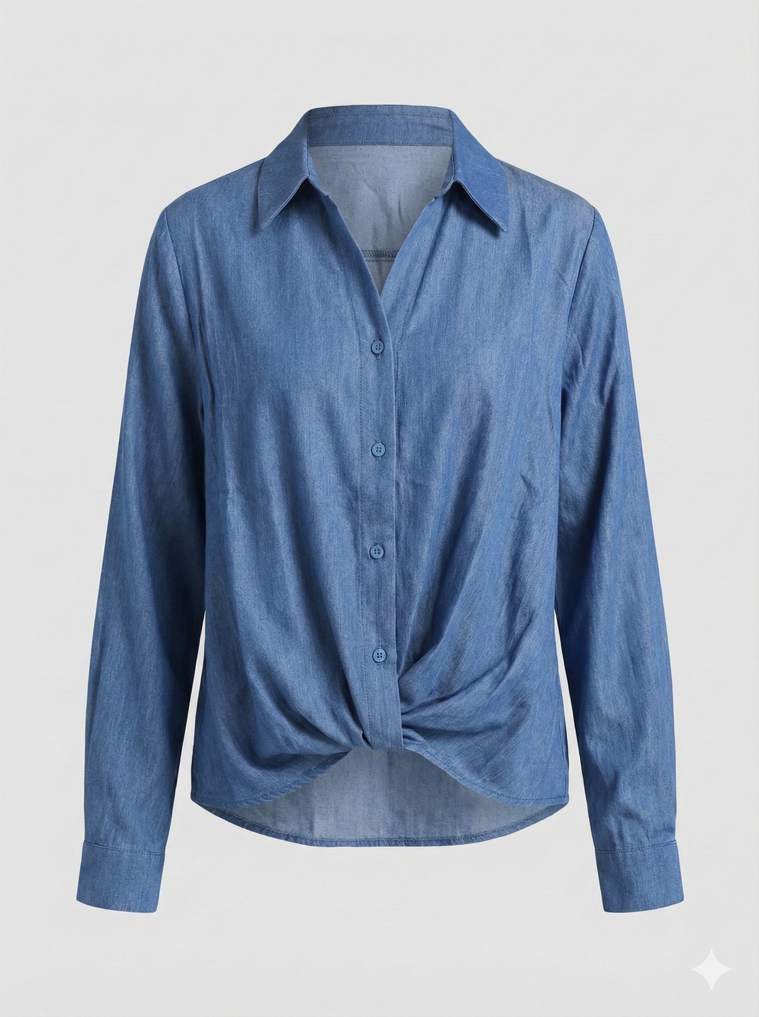 La coupe est pensée pour flatter la silhouette sans la contraindre. Le col chemise classique structure le haut, tandis que la patte de boutonnage discrète permet de moduler le décolleté selon le style souhaité. Le détail signature de ce modèle réside dans son nœud à nouer sur le devant, qui apporte une touche féminine et tendance, tout en permettant d’ajuster la longueur visuelle de la chemise.