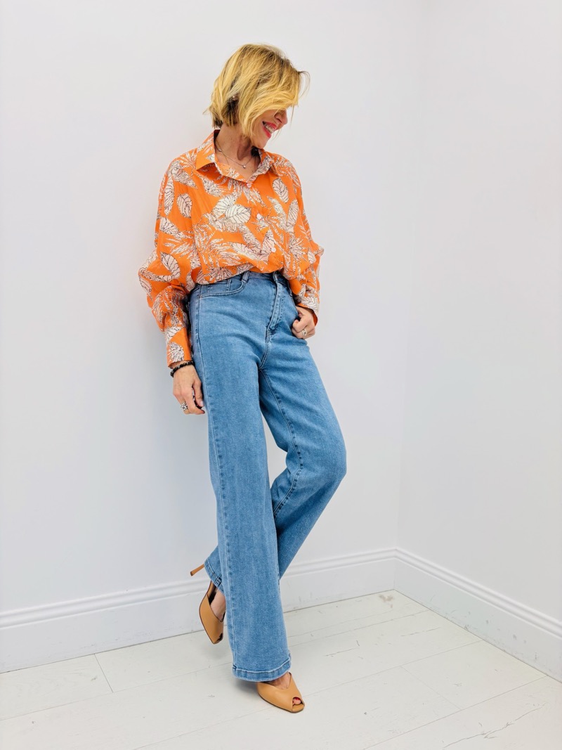 Portée avec un jean comme sur le visuel, cette chemise crée un look casual chic facile à adopter. Elle peut également être associée à un pantalon fluide ou une jupe pour un rendu plus élégant.