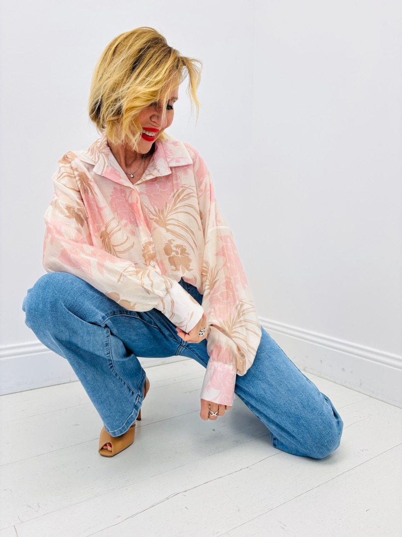 Cette chemise fluide imprimée séduit par son jeu de motifs artistiques et ses coloris vibrants, parfaits pour apporter du caractère à une silhouette. Son imprimé abstrait et naturel, inspiré des formes organiques, crée un rendu visuel moderne et raffiné.