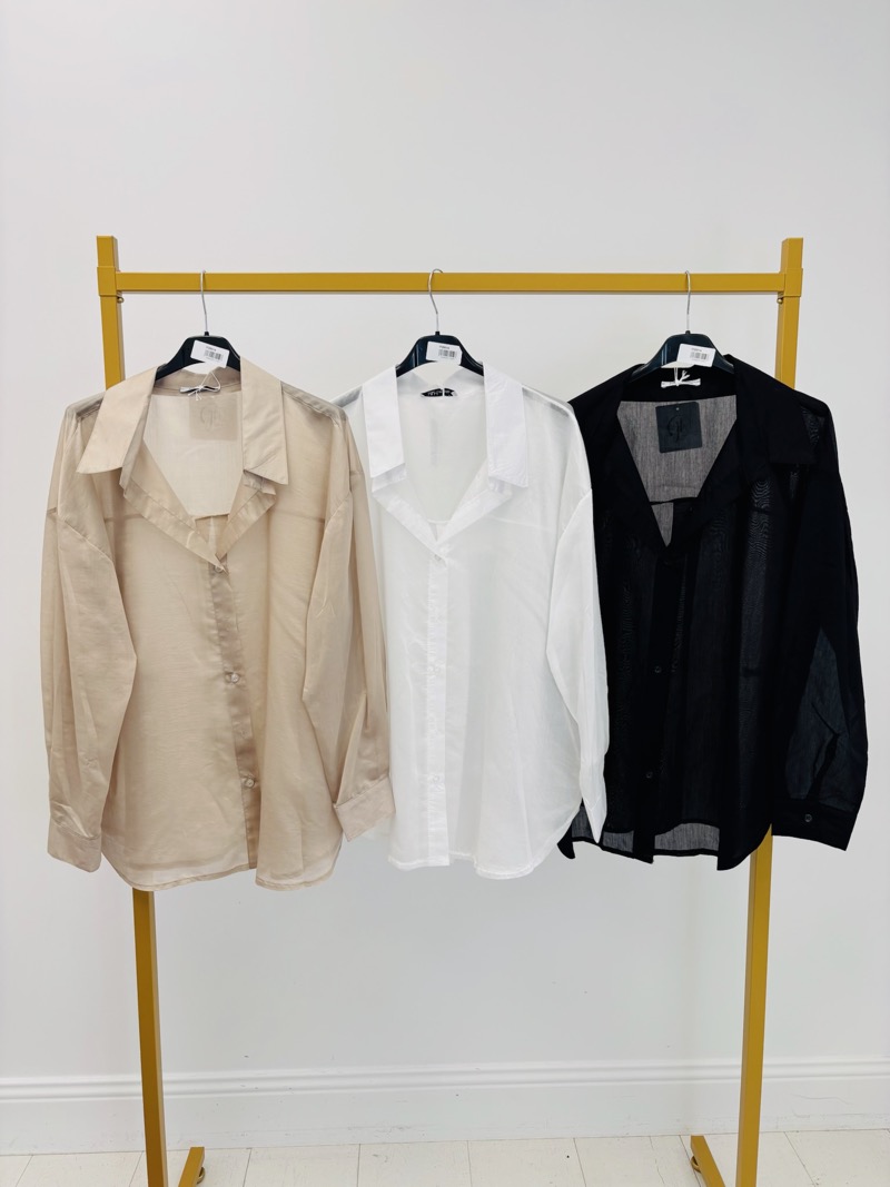 Délicate, aérienne et ultra polyvalente, cette chemise légère est la pièce idéale pour composer des silhouettes modernes et élégantes. Confectionnée dans une matière fine effet voile, elle offre un tombé fluide et une transparence subtile qui apporte féminité et légèreté à chaque look.