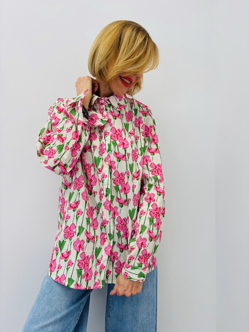 Cette chemise liberty est une pièce fraîche et féminine, idéale pour apporter de la couleur et de la légèreté à une silhouette. Son motif fleuri délicat, à l’esprit printanier, en fait un incontournable pour dynamiser une tenue tout en restant élégante.
