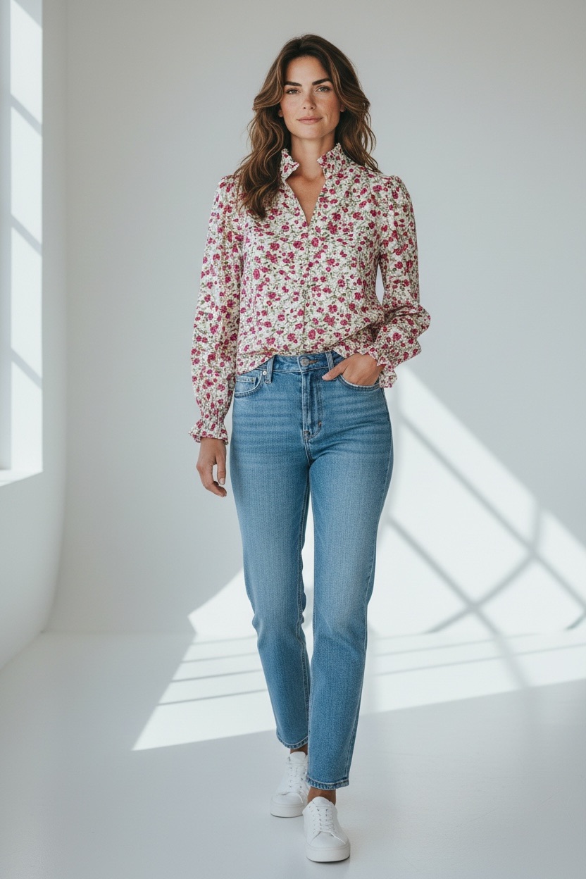 L’encolure subtilement froncée et les manches longues légèrement bouffantes structurent la silhouette tout en douceur. Une pièce idéale pour apporter une touche fraîche, romantique et lumineuse à vos collections.