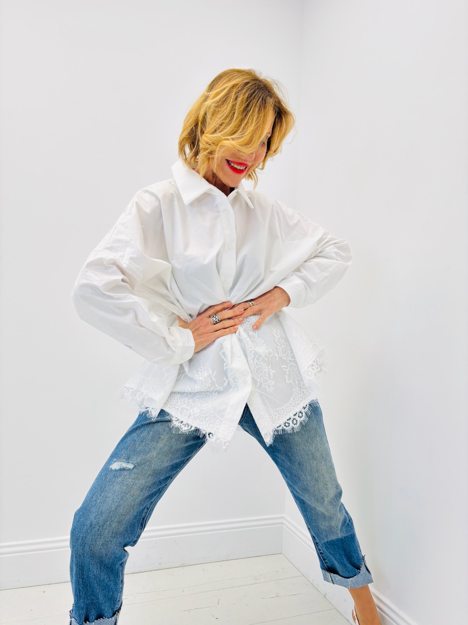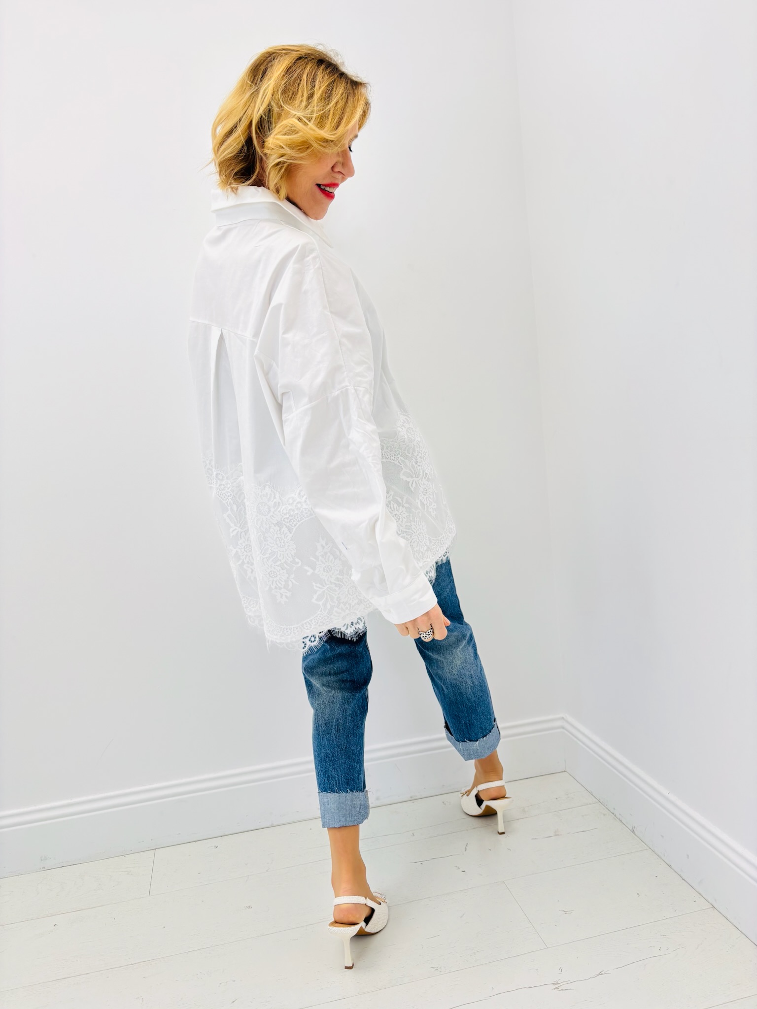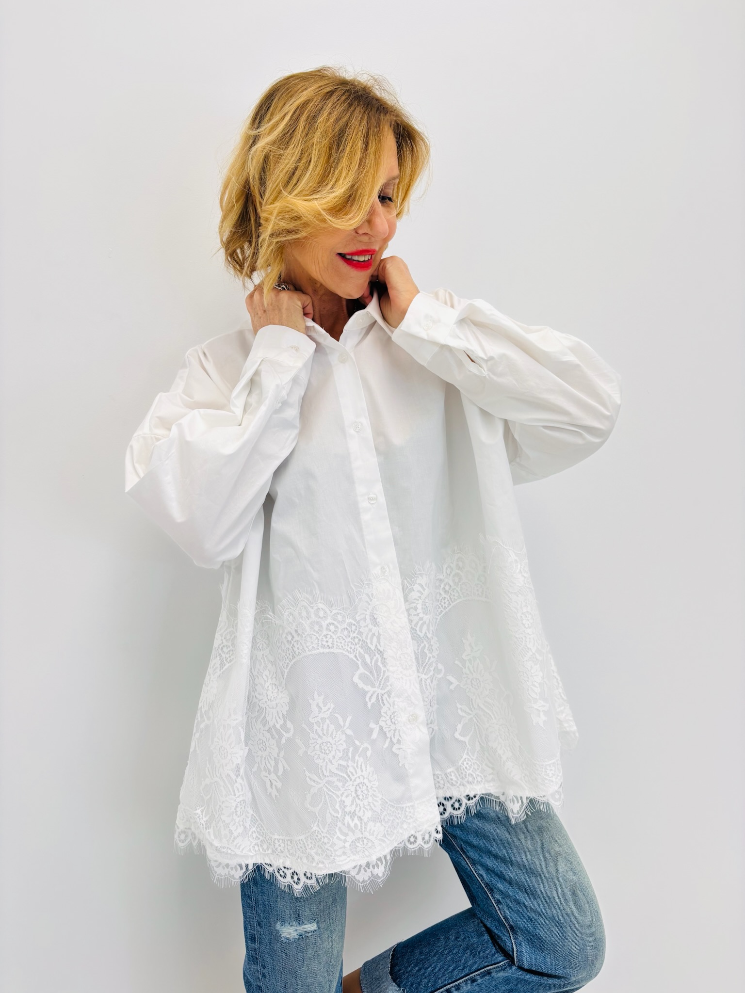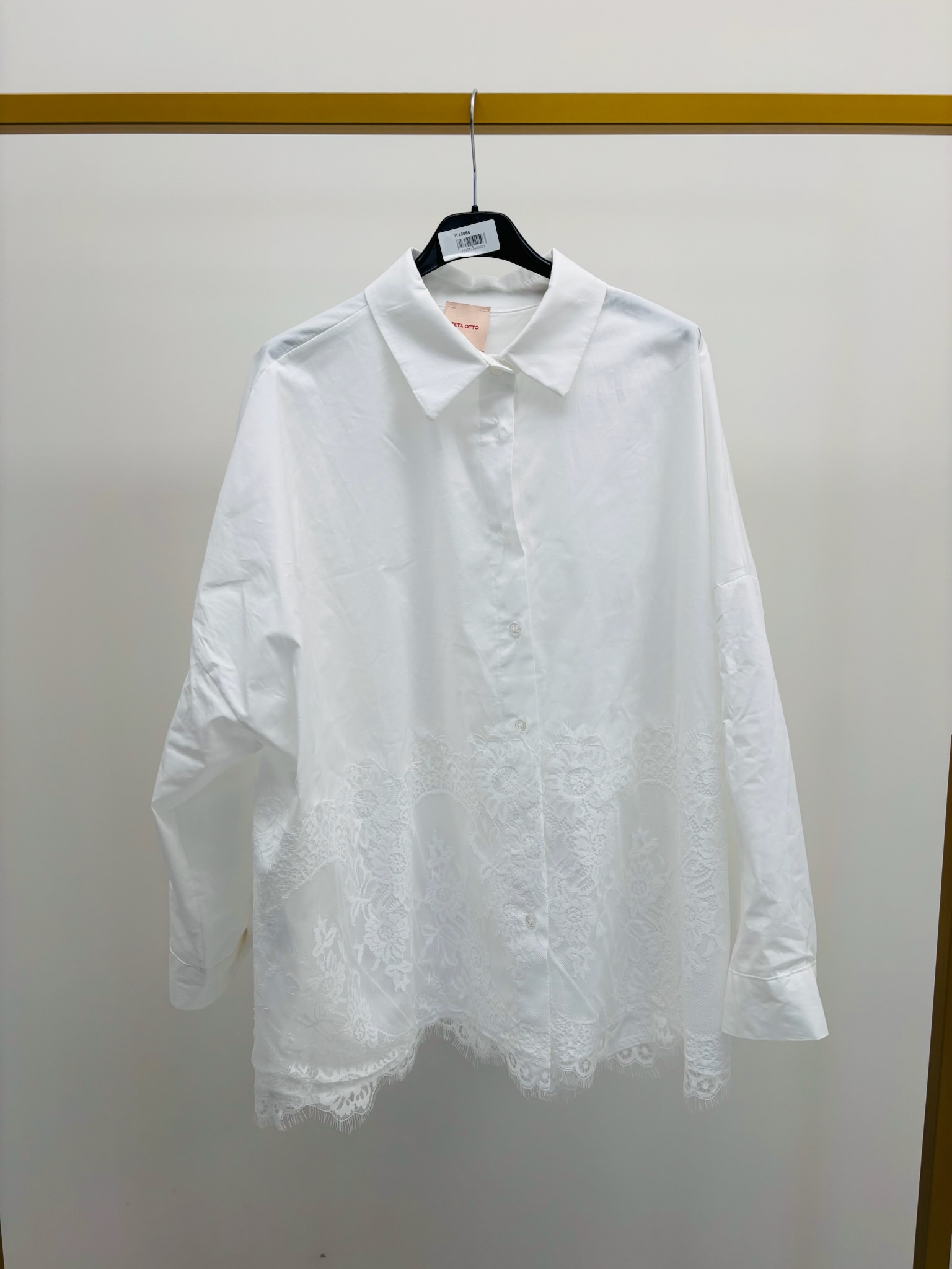 Chemise Oversize en Coton avec Détail Dentelle – élégance lumineuse et féminine