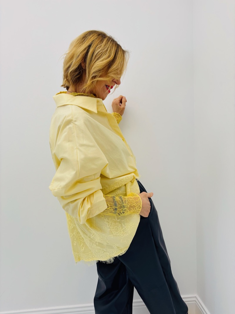 Disponible en jaune doux lumineux ou en blanc intemporel, cette chemise est une valeur sûre pour enrichir une collection avec une pièce féminine, facile à associer et toujours élégante.