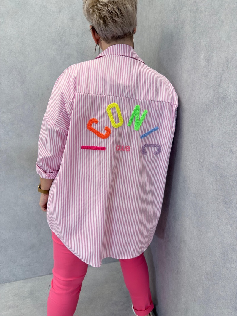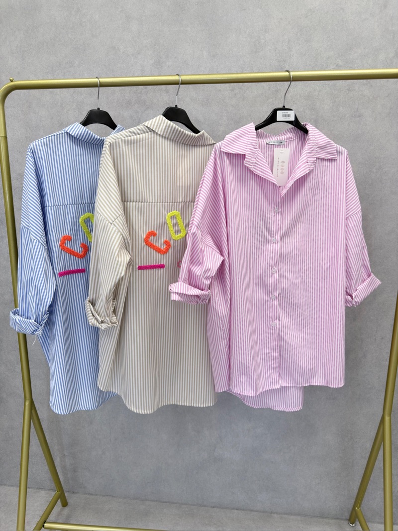 Craquez pour cette chemise oversize rayée spécialement pensée pour sublimer les silhouettes grande taille avec style et modernité. À la fois confortable, tendance et facile à associer, cette pièce revisite la chemise classique avec une touche originale grâce à son détail brodé coloré placé au dos. Une création idéale pour apporter du peps à une collection printemps-été tout en restant facile à vendre en boutique.